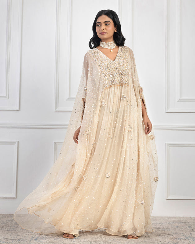 Draped Floret Double Palla Sari With Floret Pearl Bustier