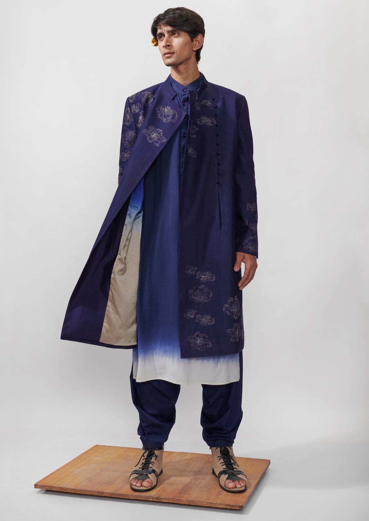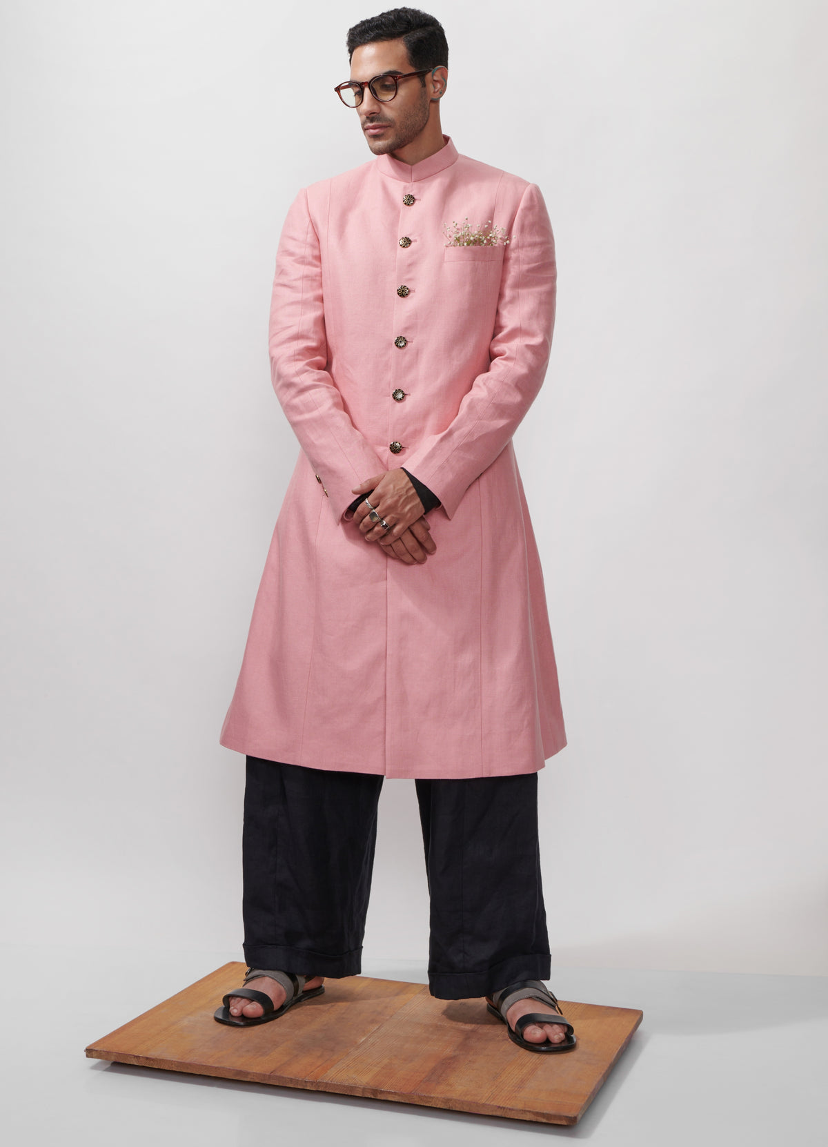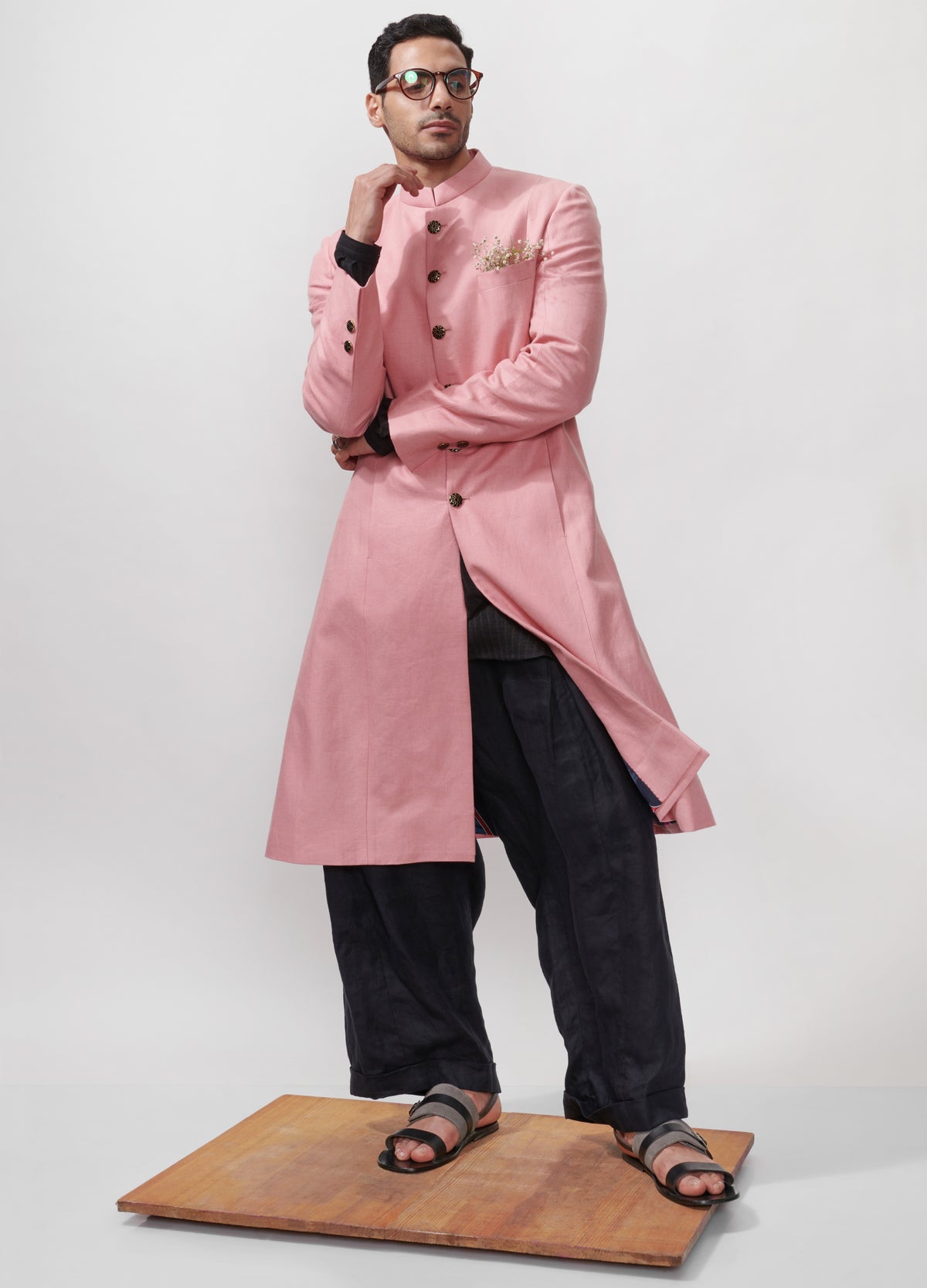 Taupe To Black Threadwork And Cutdana Bandhgala