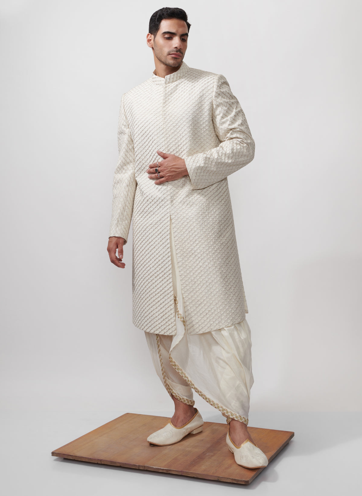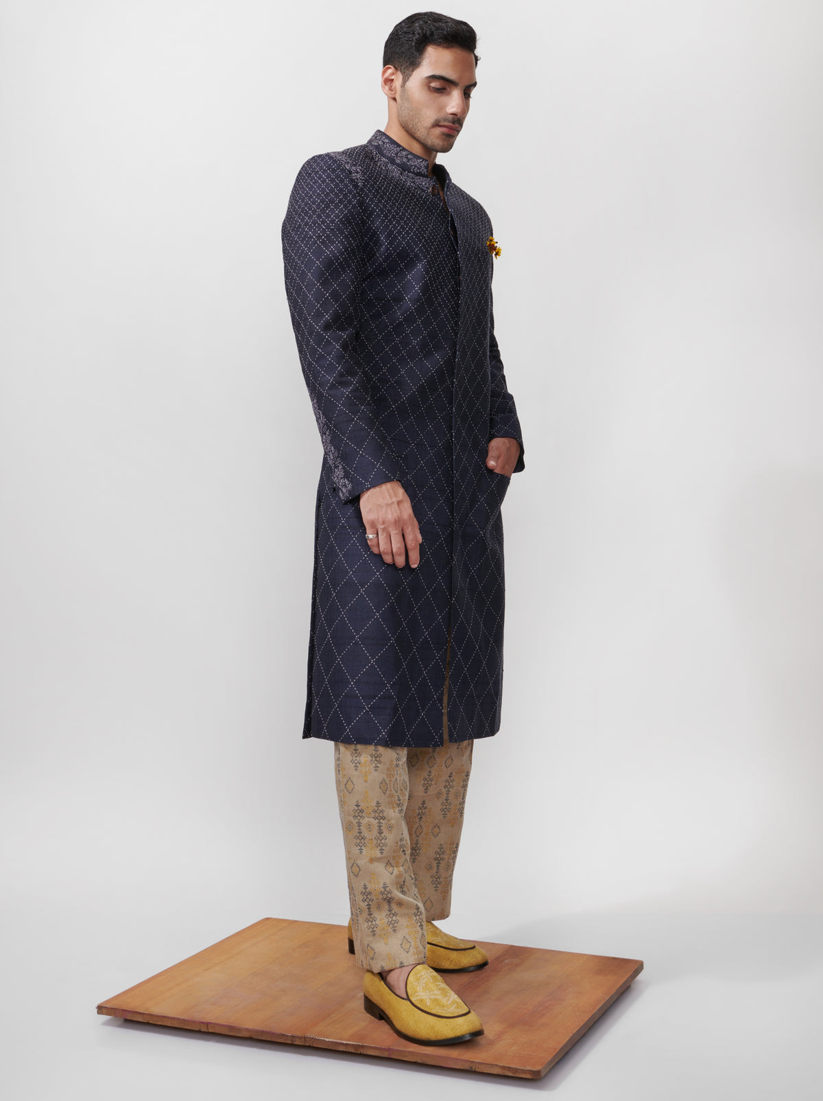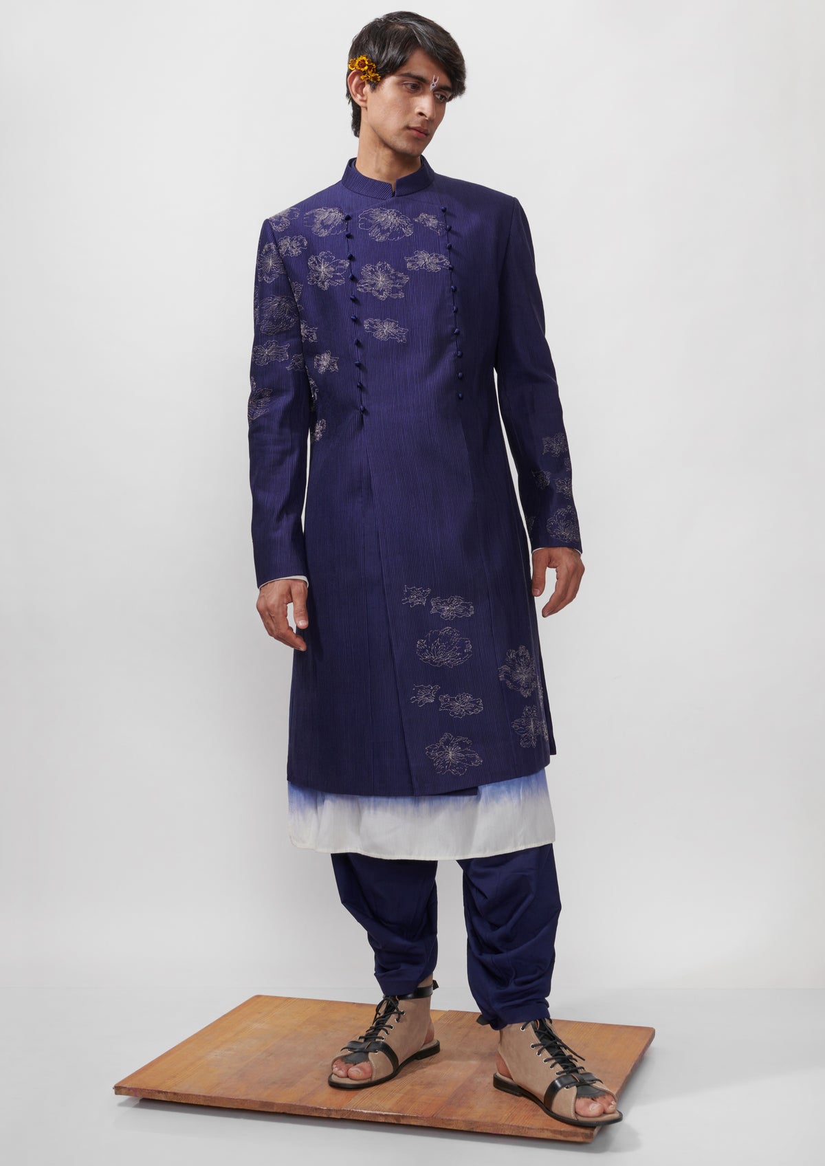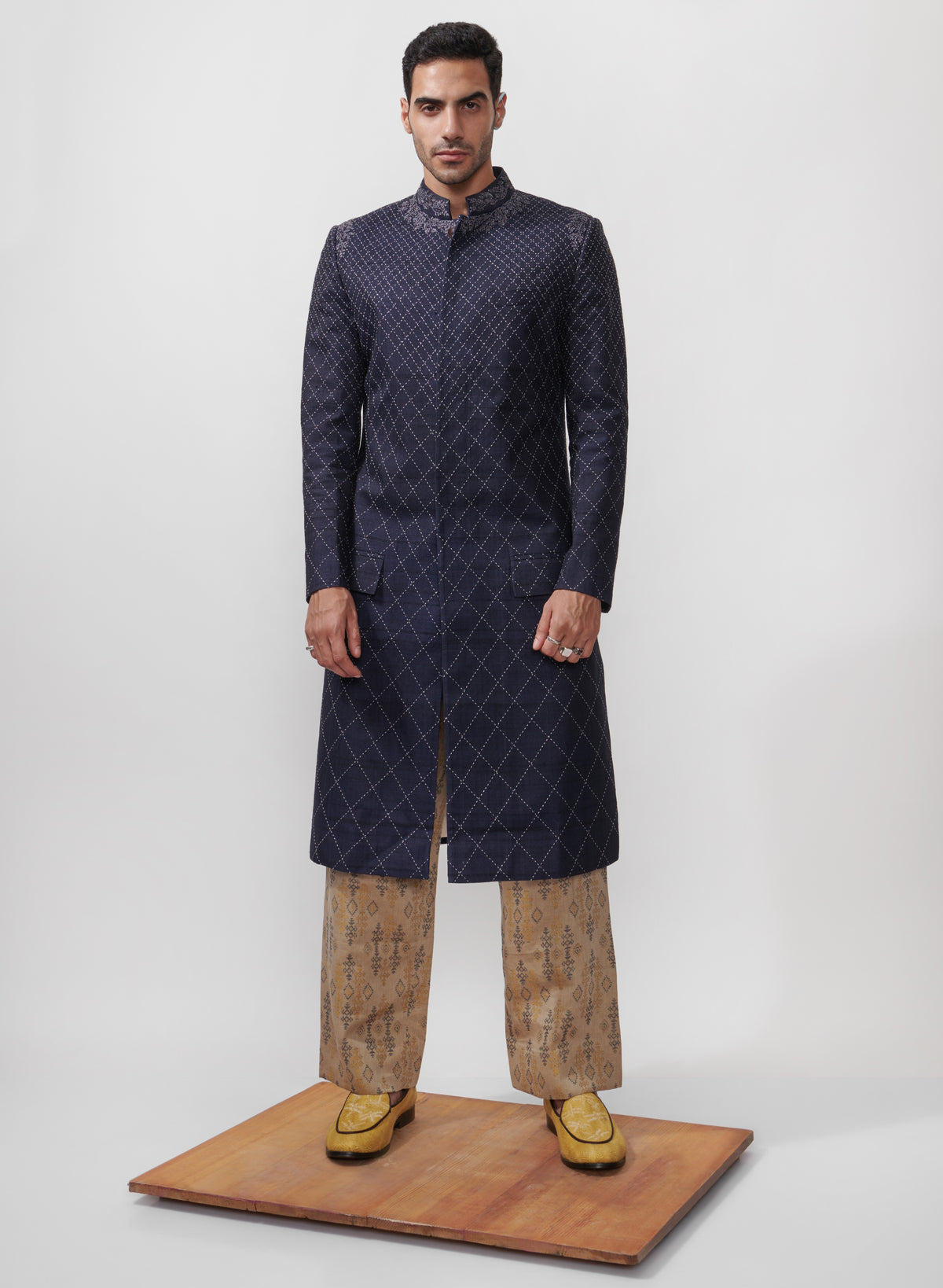 Taupe To Black Threadwork And Cutdana Bandhgala