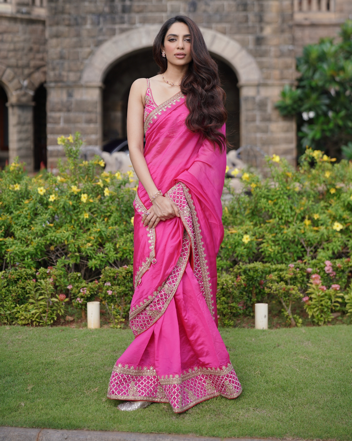 Fuchsia Pink Slit Silk Organza Kurta Set