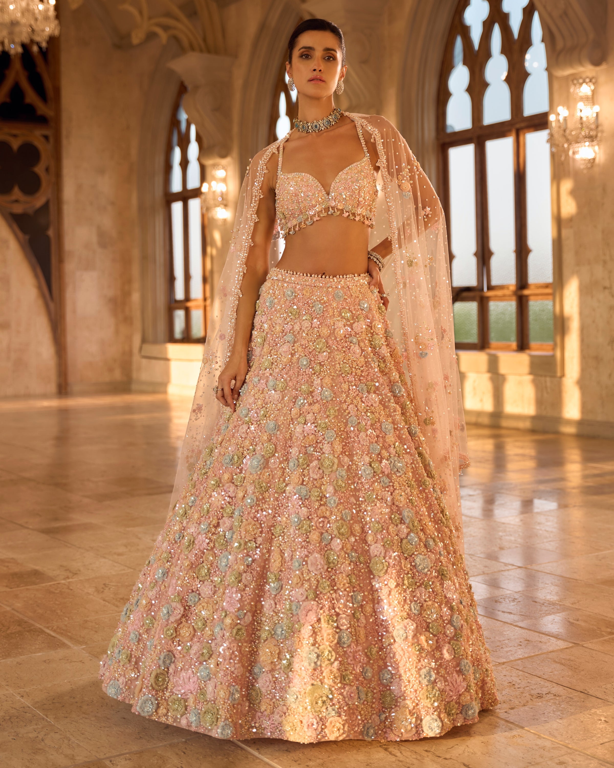 Chapelle Multi-Coloured Three-Dimensional Floral Lehenga Set
