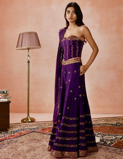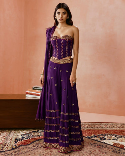 Elevate your style with our corset sharara set. This three-piece set blends modern elements with ancient inspiration, showcasing an eye-catching embellished coin work corset as its centerpiece. Paired with a sharara and embroidered dupatta, this set exudes sophistication and versatility for any occasion.