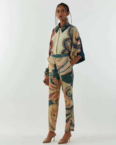 Pair with the matching Ivory mandala top. Crafted in natural crepe, this straight fit pant features an ambi print.