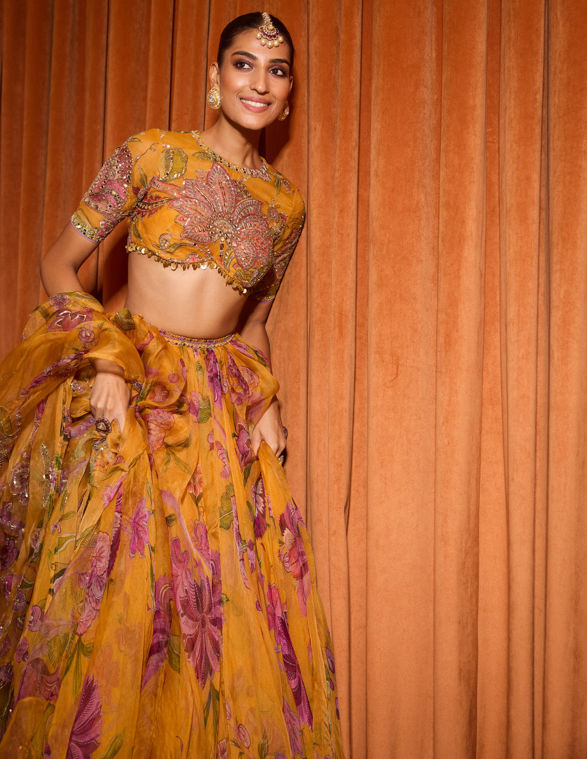 Antique Gold Embellished Lehenga Set Ready to Ship