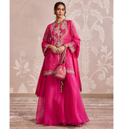 Elevate your wardrobe with the exquisite Mehrban kurta set. Adorned with allover embroidered organza fabric, this set offers a luxurious and sophisticated look. The plain organza sharara adds a touch of elegance, while the two-side embroidered border silk dupatta adds a hint of opulence. Embrace the world of art and fashion with this exclusive piece.