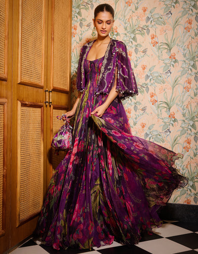 Indulge in luxury with the naila anarkali set. This exquisite set features a beautifully embroidered ruched anarkali with tie-ups at the back for a flattering, cinched fit. Complete the look with the hand embroidered cape, adding a touch of elegance and sophistication. Elevate your wardrobe with this exclusive piece.