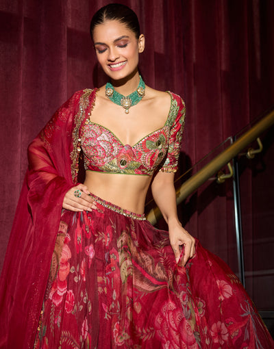 Introducing the zara lehenga set, a luxurious and exclusive addition to your wardrobe. Crafted with intricate detail and exquisite fabrics, this set exudes elegance and sophistication. Elevate your style and make a statement with this timeless piece.