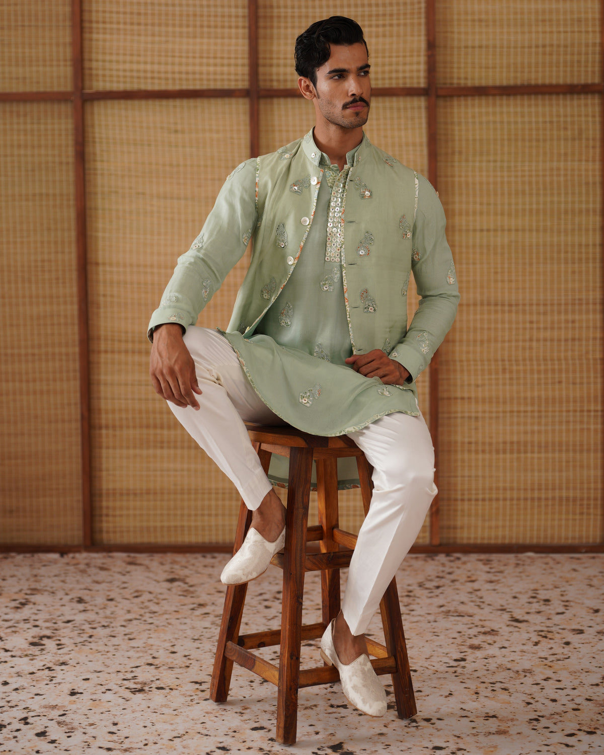 Molten Gold Yellow Hand Embroidered Kurta Set