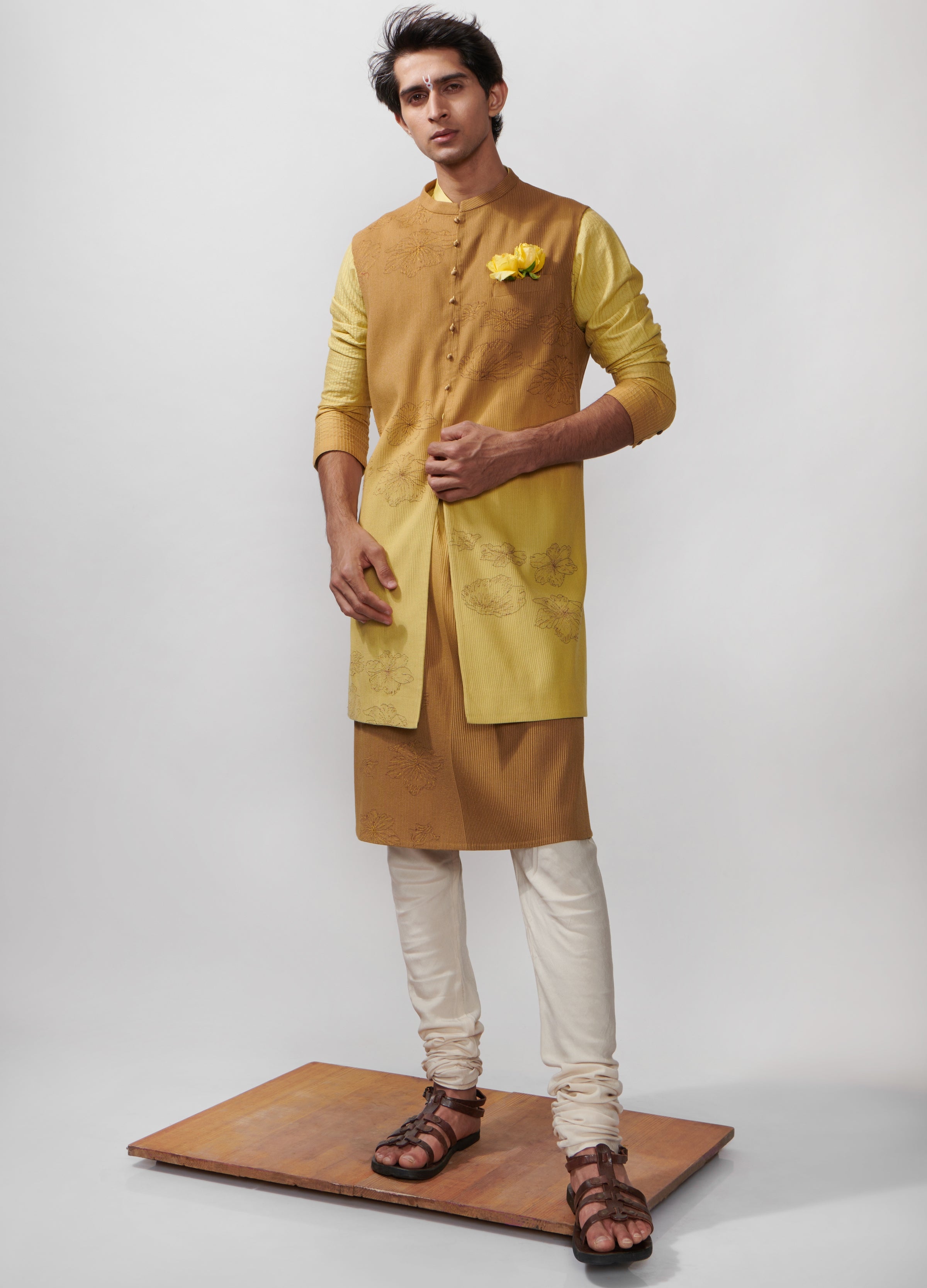 Ochre Trinklet And Pots Menswear Kurta Set Ready to Ship