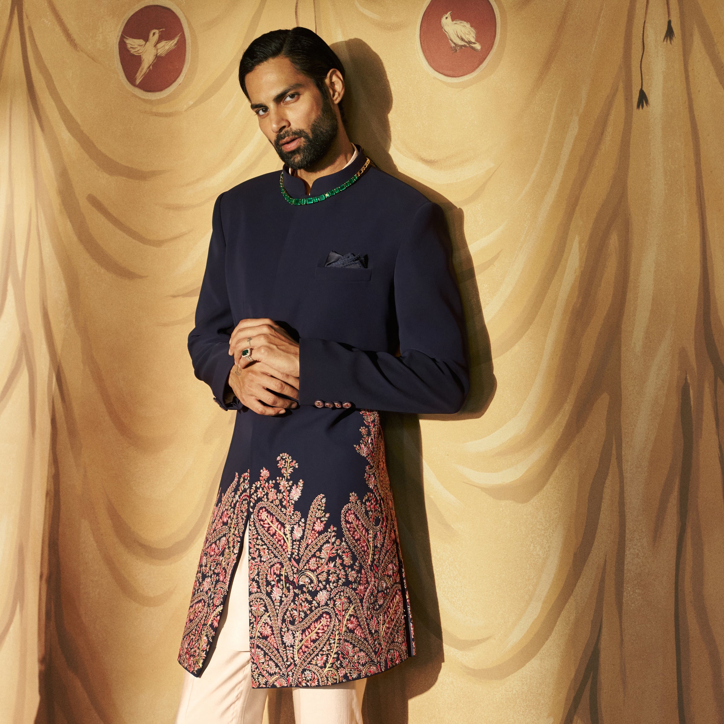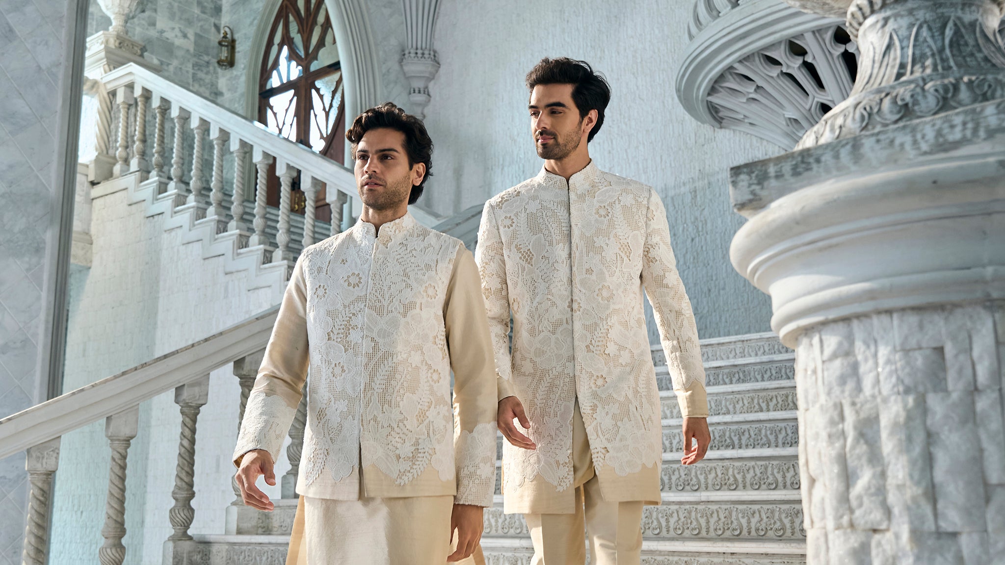 At KYNAH, we craft sophisticated groom’s wear that blends timeless tradition with modern style—designed for the man who values elegance, fit, and detail.