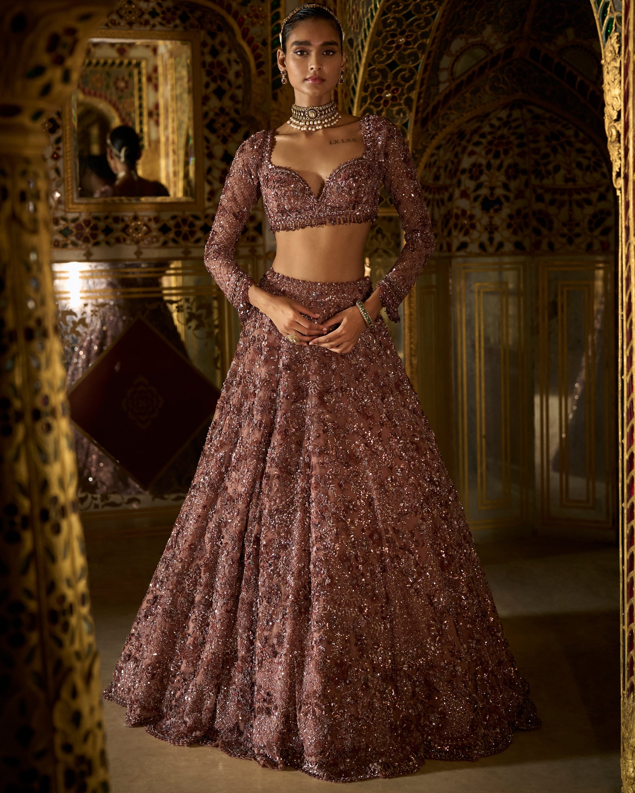 Antique Gold Embellished Lehenga Set Ready to Ship