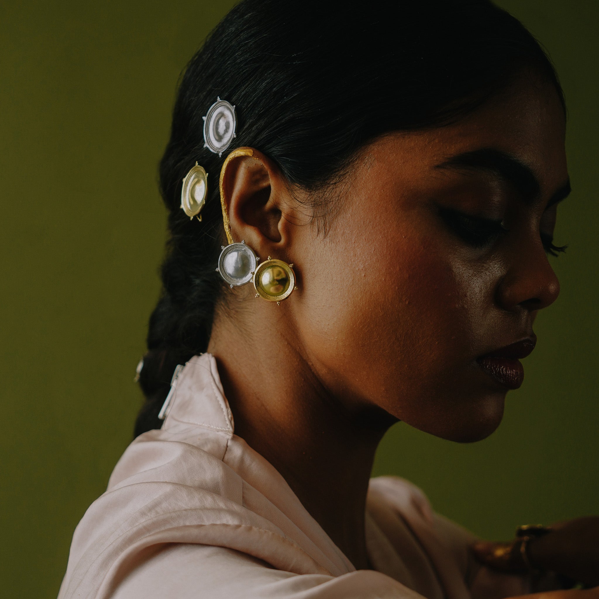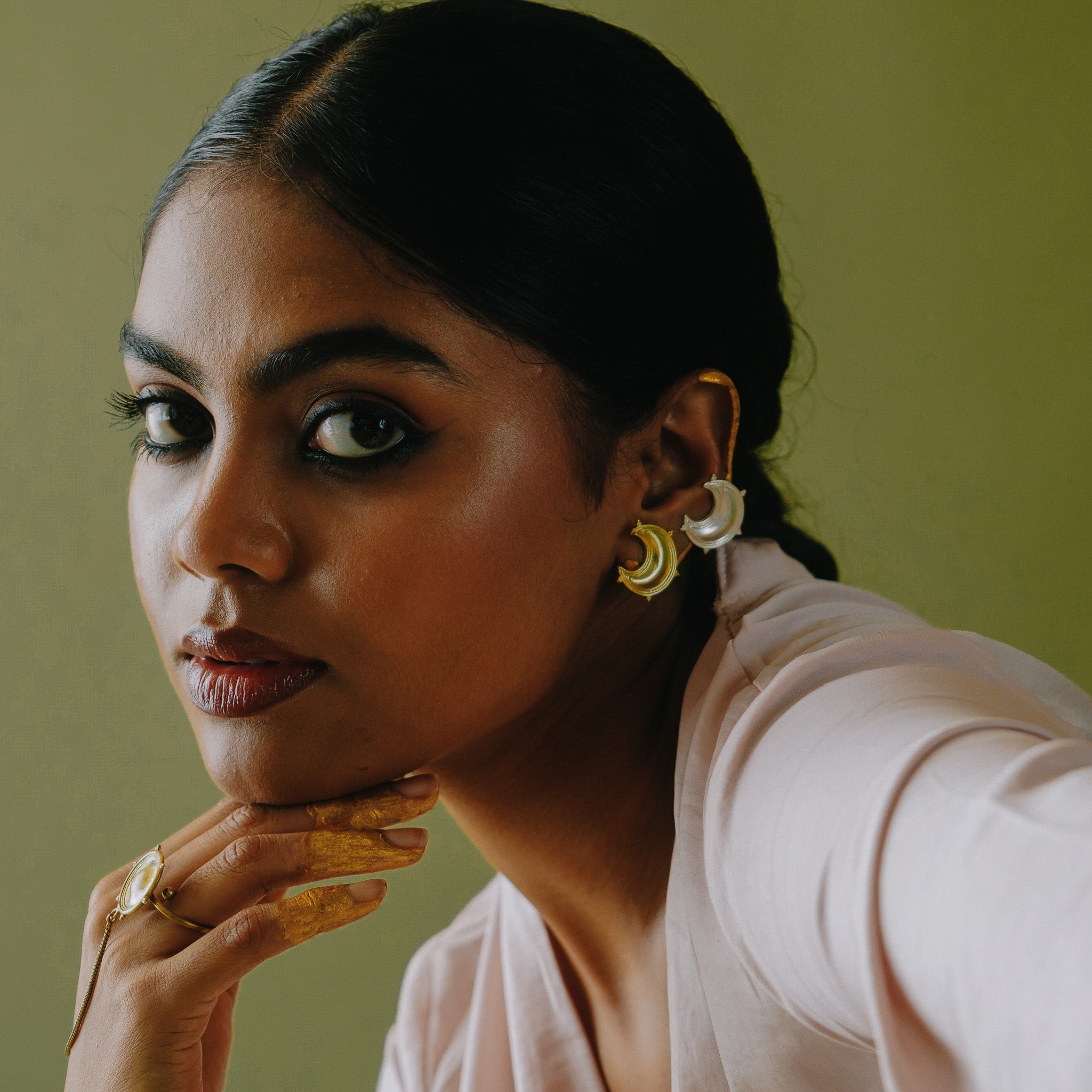 Highlighting the opposing yet balancing force of the day and night with the Sun and Moon motifs, the mismatched studs are a stunning statement of duality. Soak up the feeling of basking in the warm sun - through the Sun Small Studs or wear the Moon Small Studs to embrace the moon’s gentle glow that lights our path during the darkest of times.