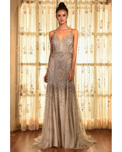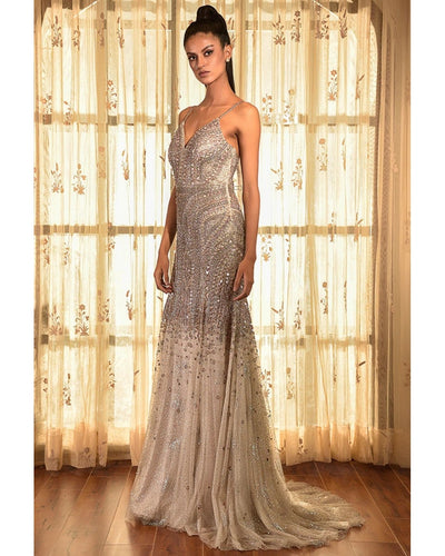 The Josephine tulle gown is a shimmering masterpiece, featuring antique silver embroidery and delicately placed mauve colored sequins. Its use of high-quality tulle fabric adds a touch of elegance while providing a comfortable fit. Perfect for any special occasion, this gown will make you feel like royalty.