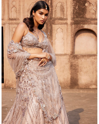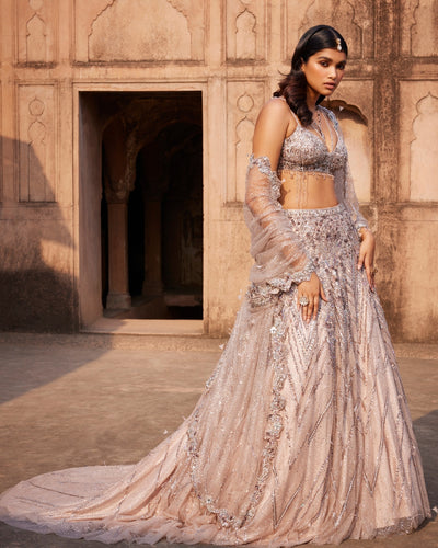 Phaenna Silver Shimmer Tulle Embroidered Lehenga Set