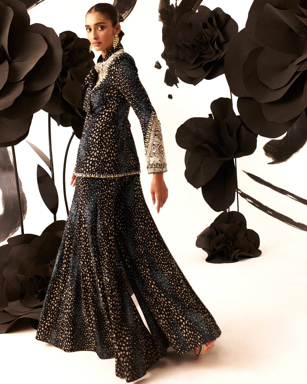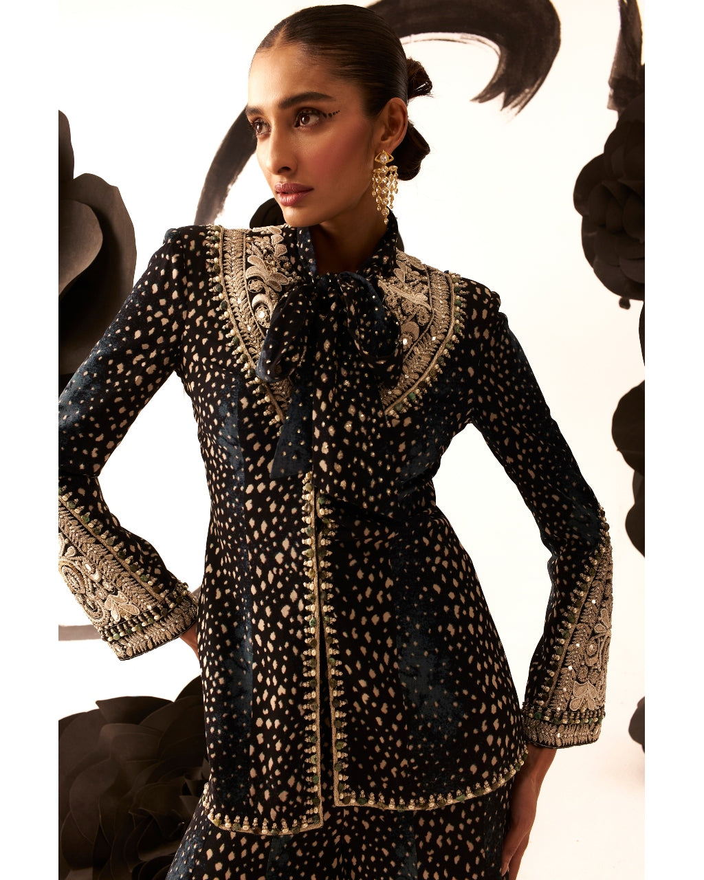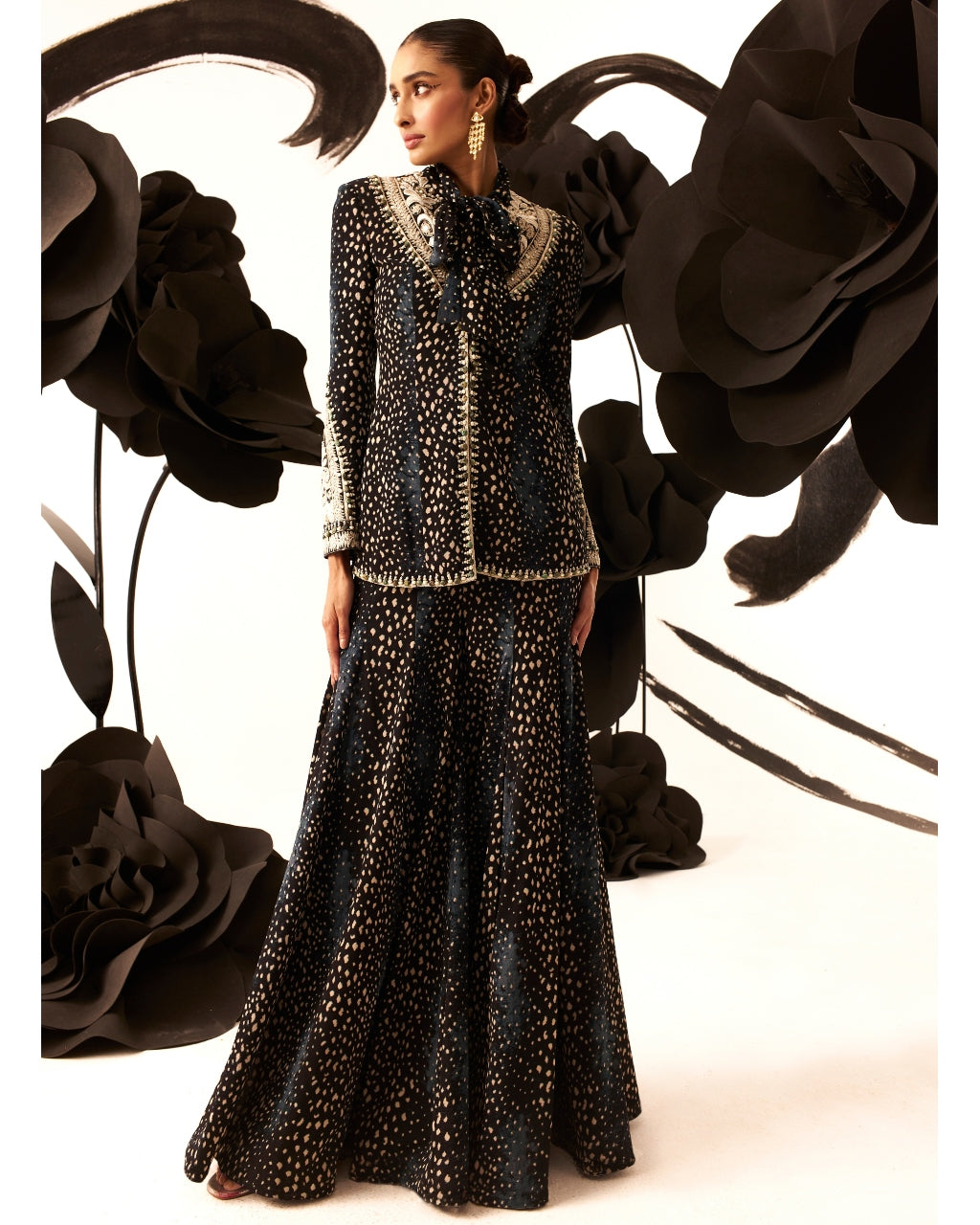 Rosette Embroidered Bow Jacket & Sharara Set