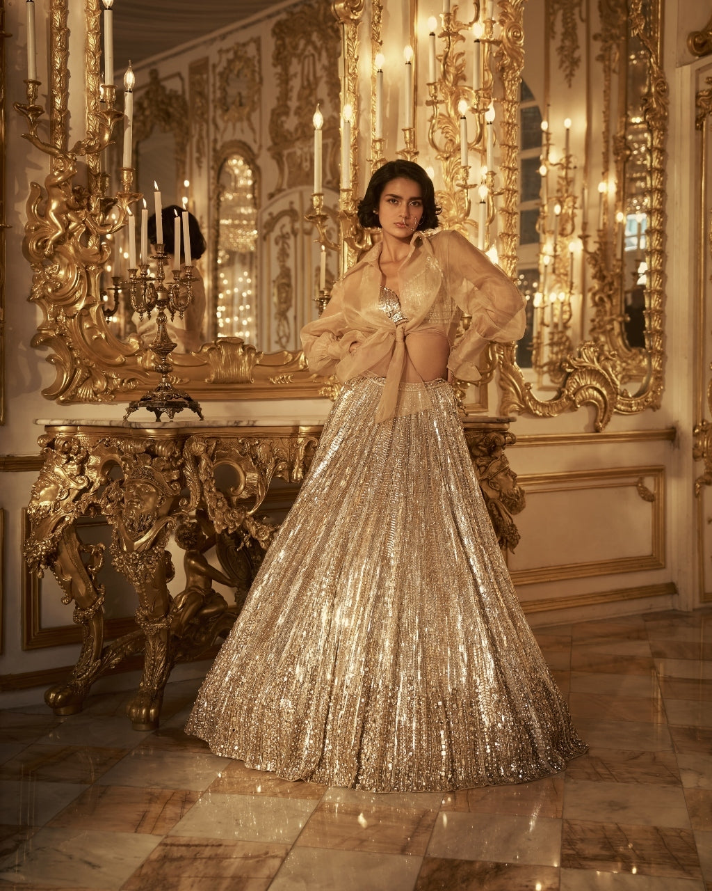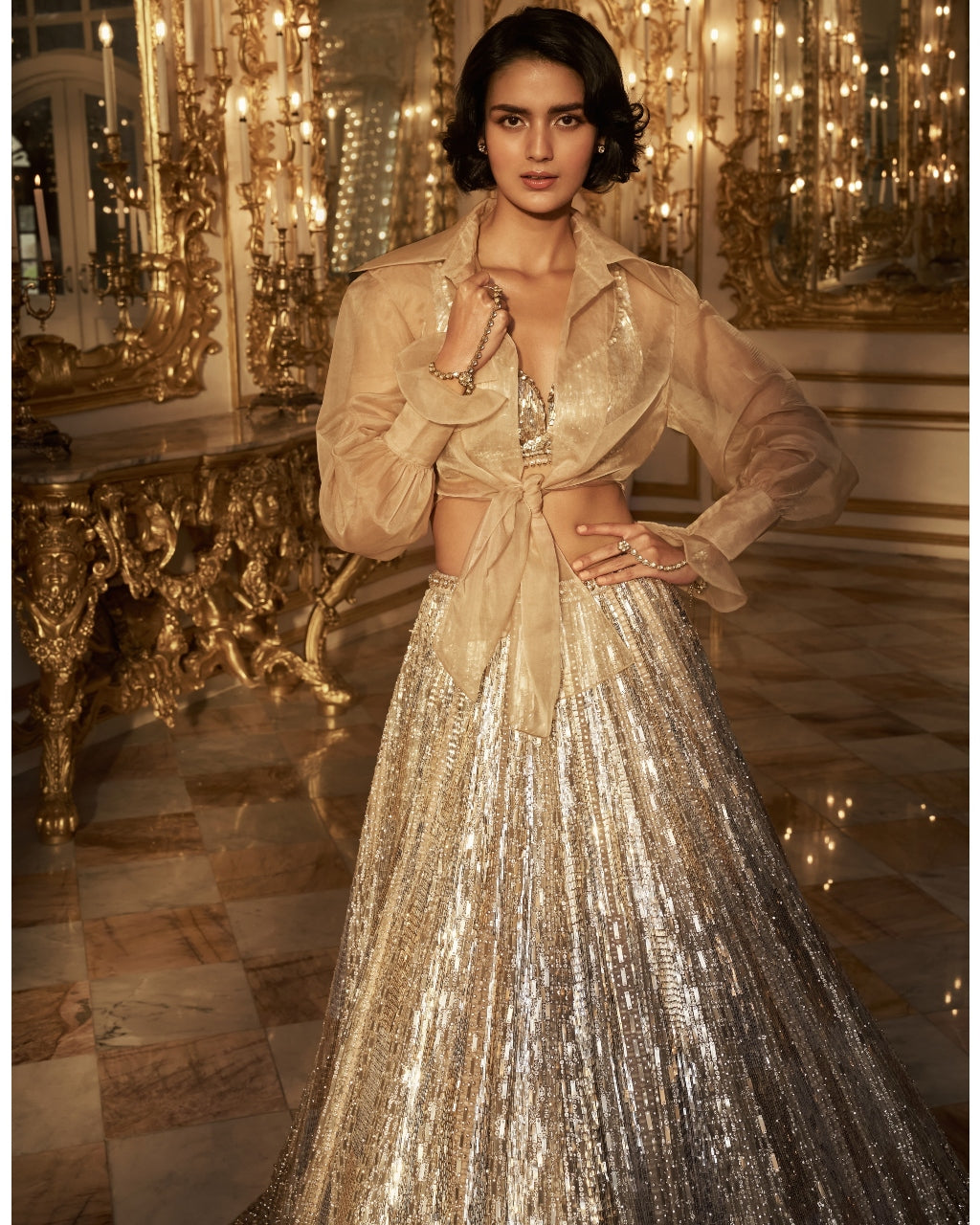 Silver Gold Crystal Lehenga Set