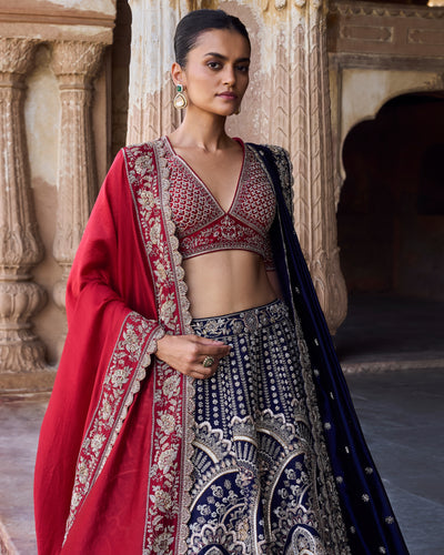 Indulge in pure luxury with our Valeriana lehenga set. Crafted in raw silk with exquisite zardoise embroidery, this set exudes elegance and sophistication. The embroidered blouse and two dupattas add a touch of opulence, making it perfect for special occasions. Elevate your wardrobe with this exclusive piece.
