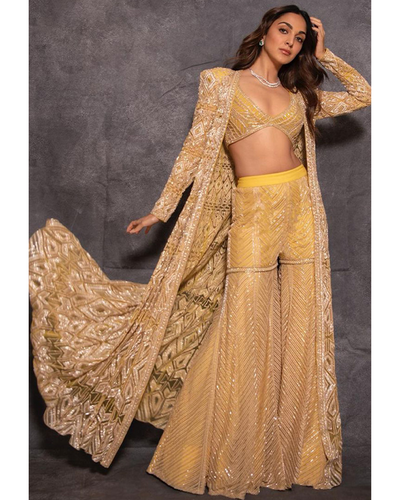Kiara Advani in the Gold Embroidered Jacket & Sharara Set