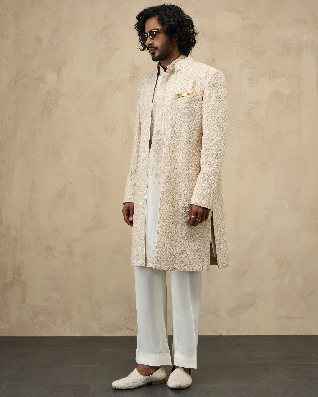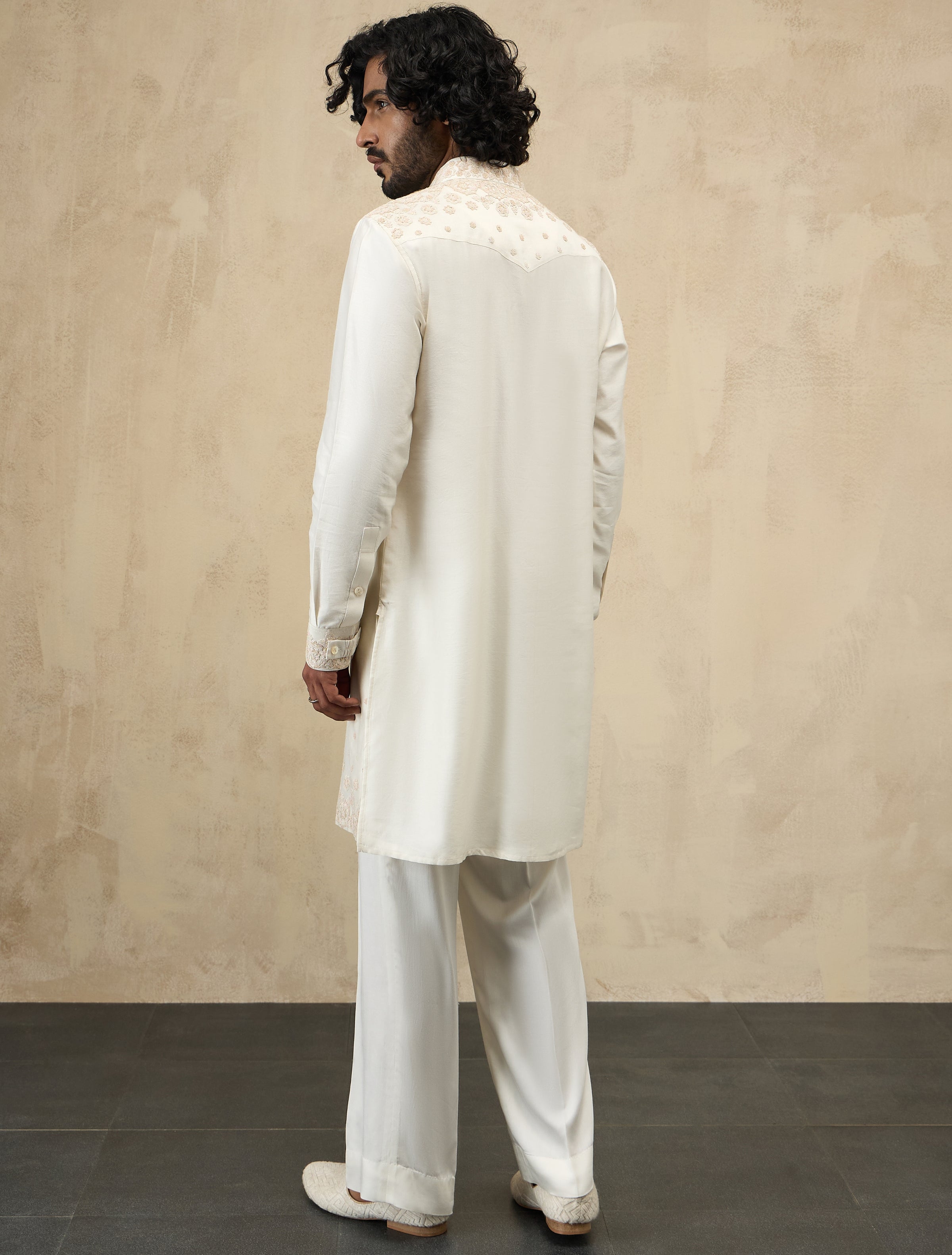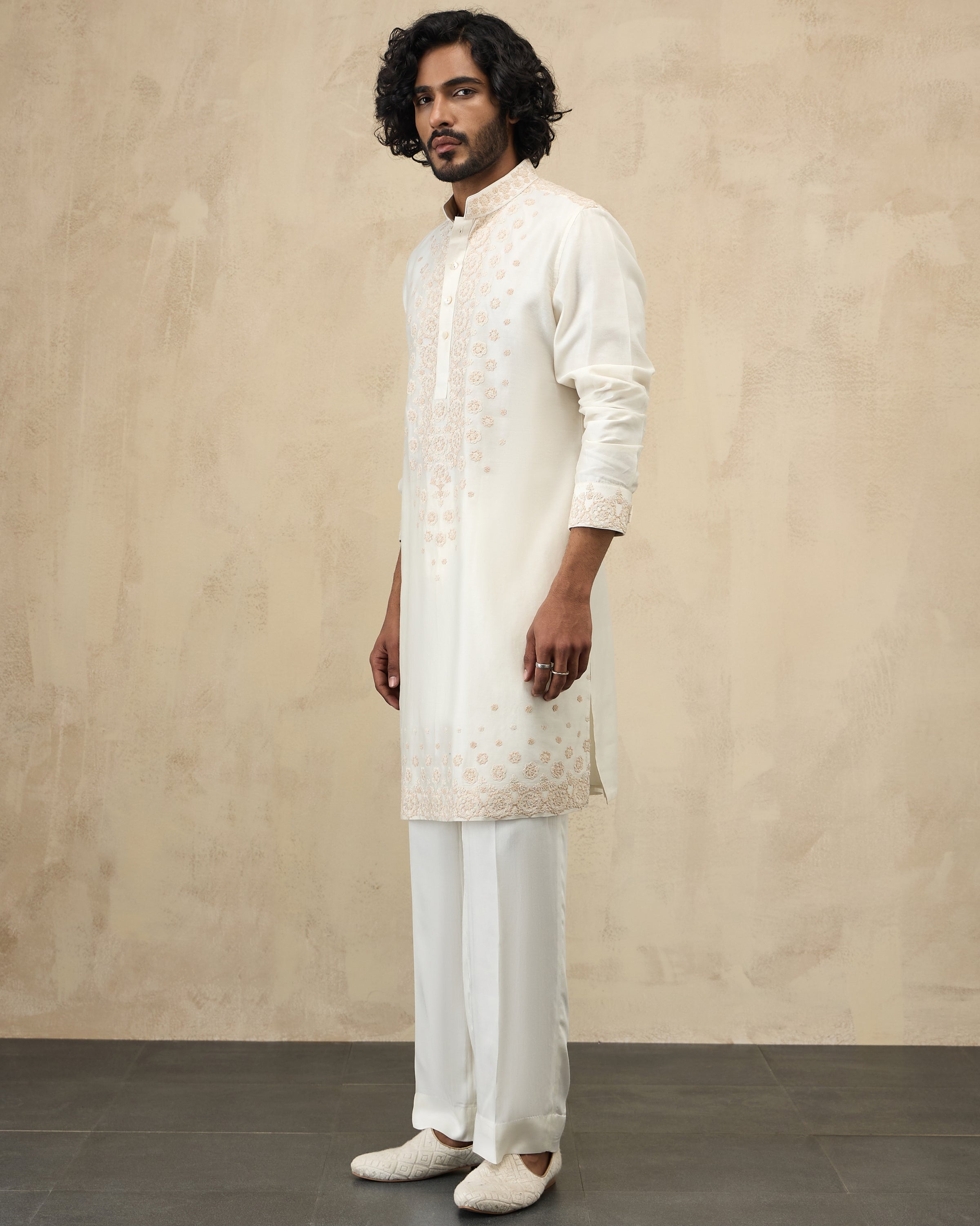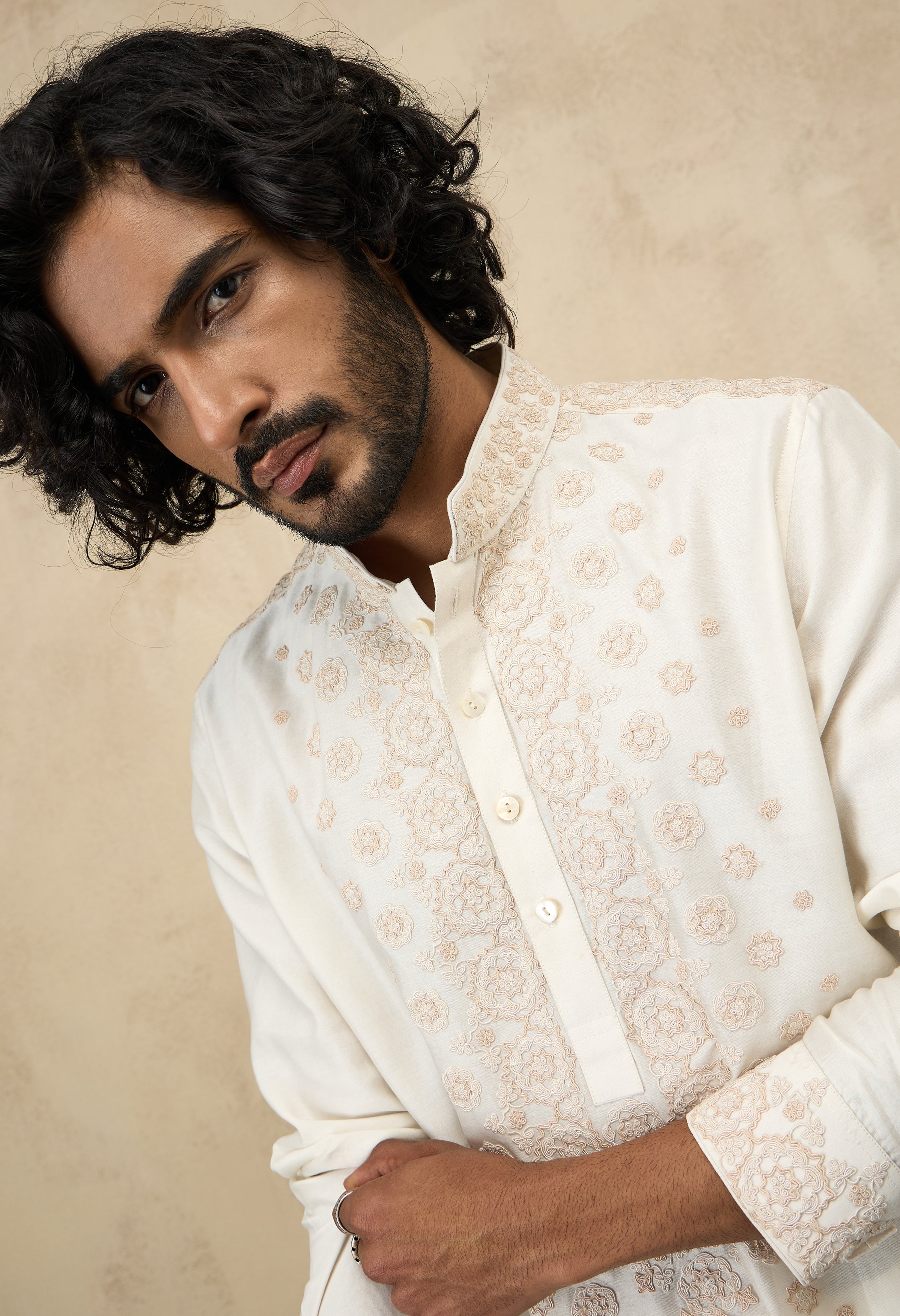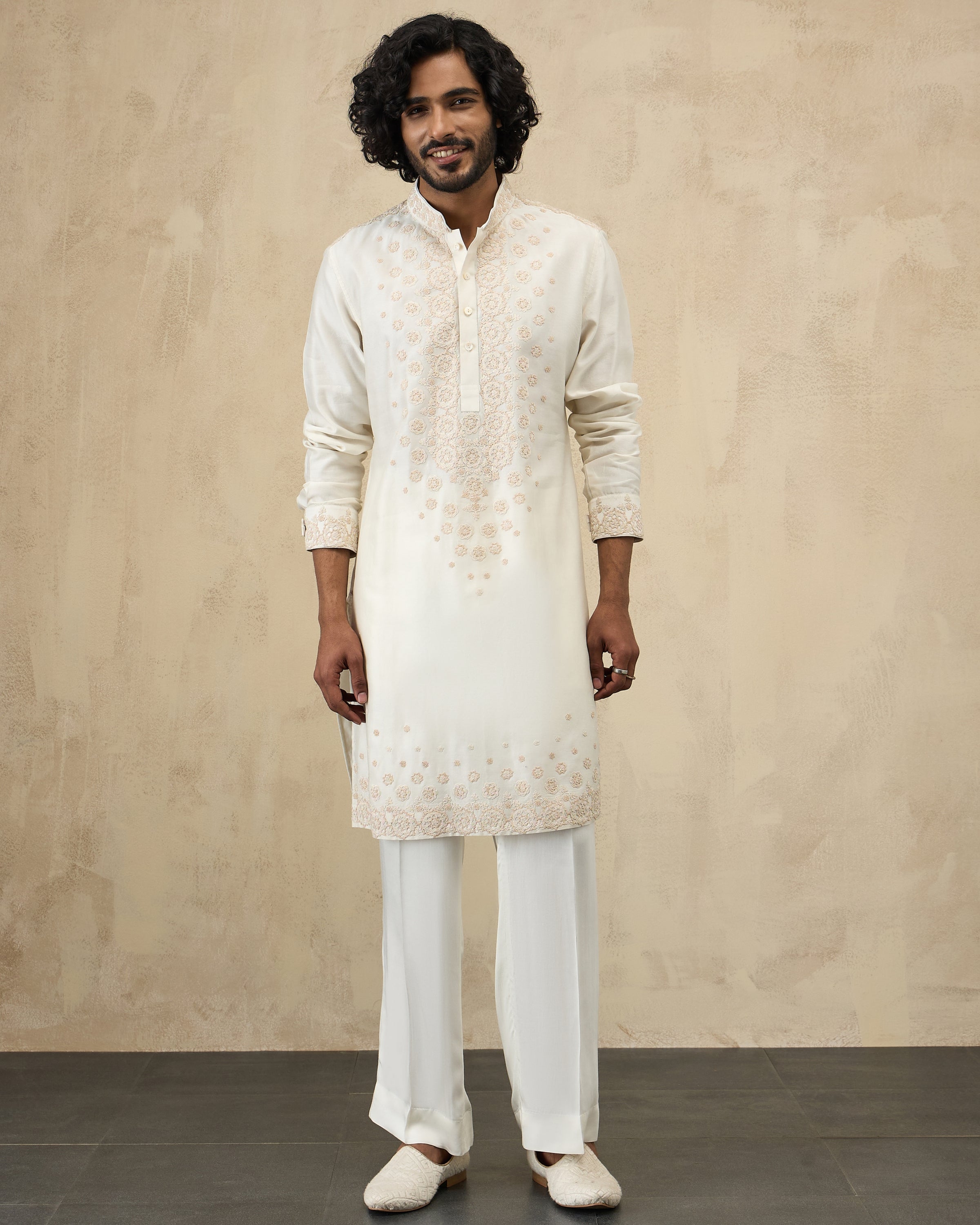 This off white double shaded kurta set offers a stylish and elegant look. Made from high-quality fabric, it has a double shaded design that adds a touch of uniqueness. The set is perfect for all occasions and provides a comfortable and sophisticated fit.