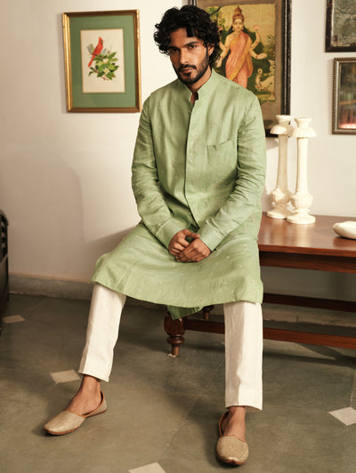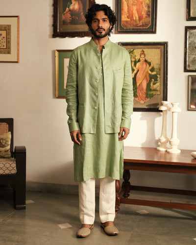 Crafted from the finest linen, the 3-piece Advik Nehru Kurta Set includes a nehru jacket, kurta, and ivory pants, offering a perfect blend of luxury and style.