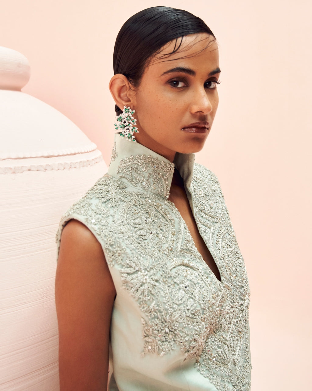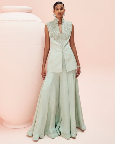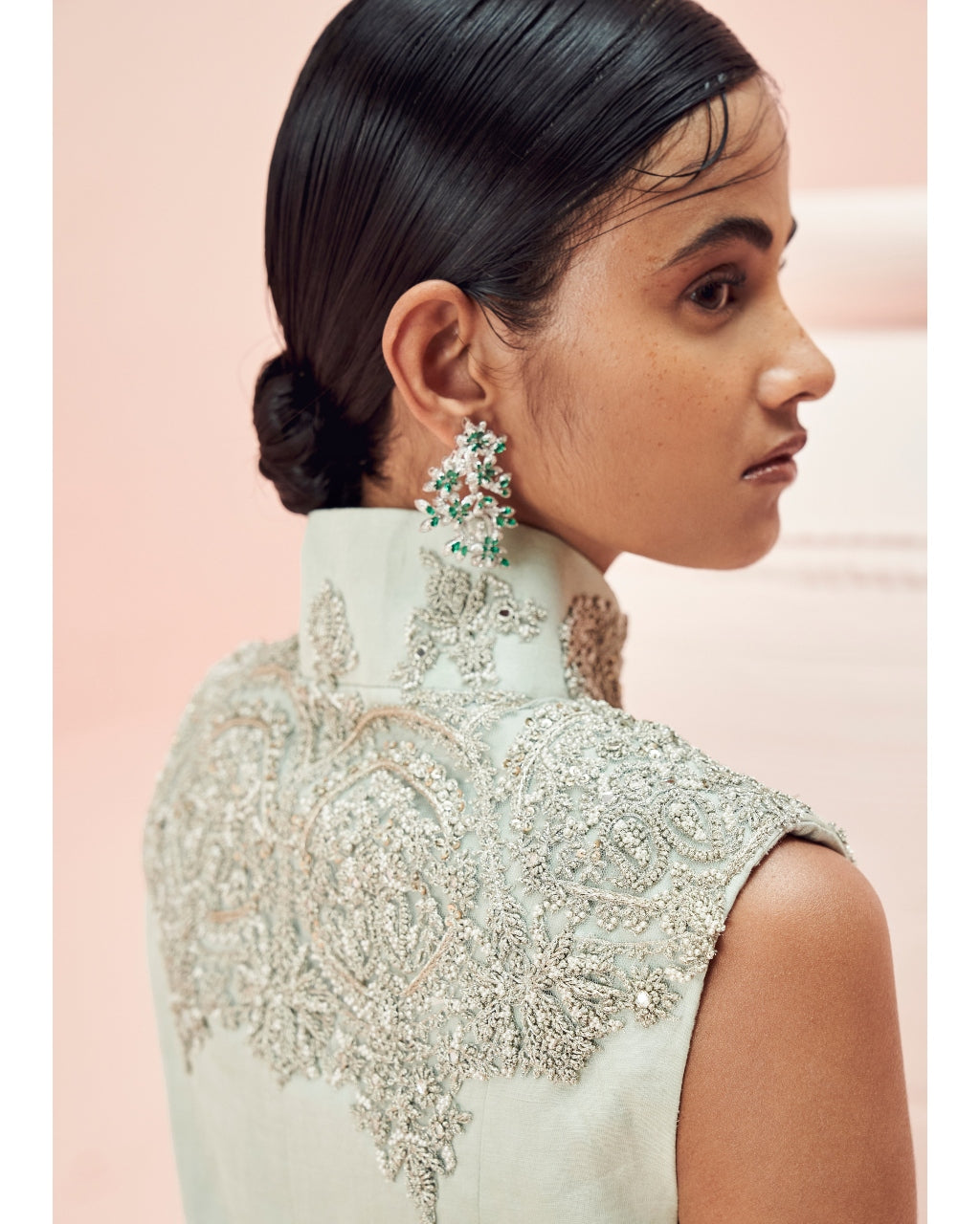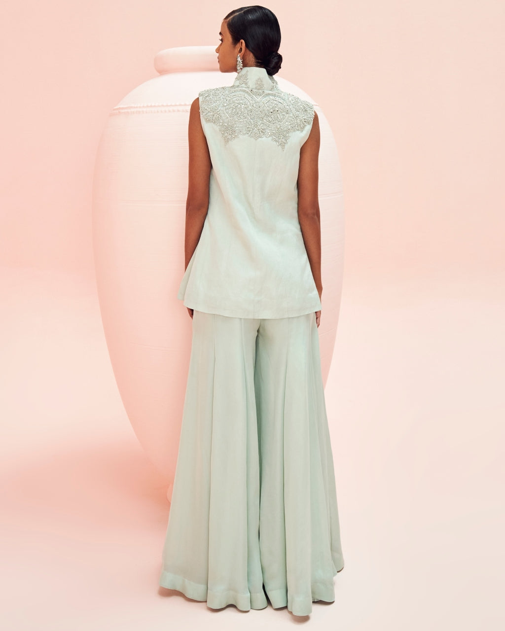 Stay comfortable and stylish on your outdoor adventures with our Aqua jacket and pants set. The elegant embroidered neckline and flexible panel design make this set perfect for any activity. Trust in its versatility and enjoy the best of both fashion and function.