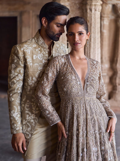 Embrace the regal elegance of the ava Wilde anarkali set. Crafted from delicate net fabric, adorned with intricate zari embroidery, this set is an ode to traditional luxury. Complete your look with the ethereal net ruffle dupatta, perfect for any occasion. Elevate your style and indulge in luxury with this exclusive set.