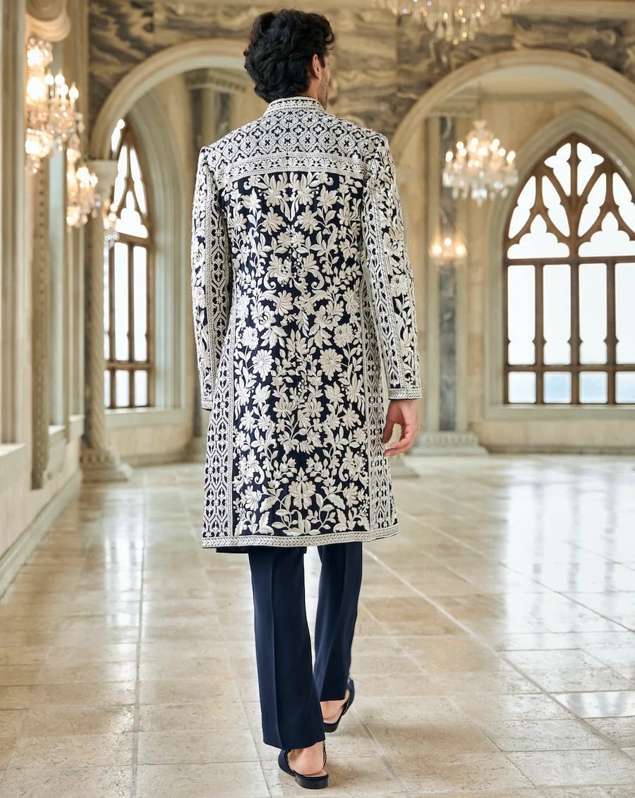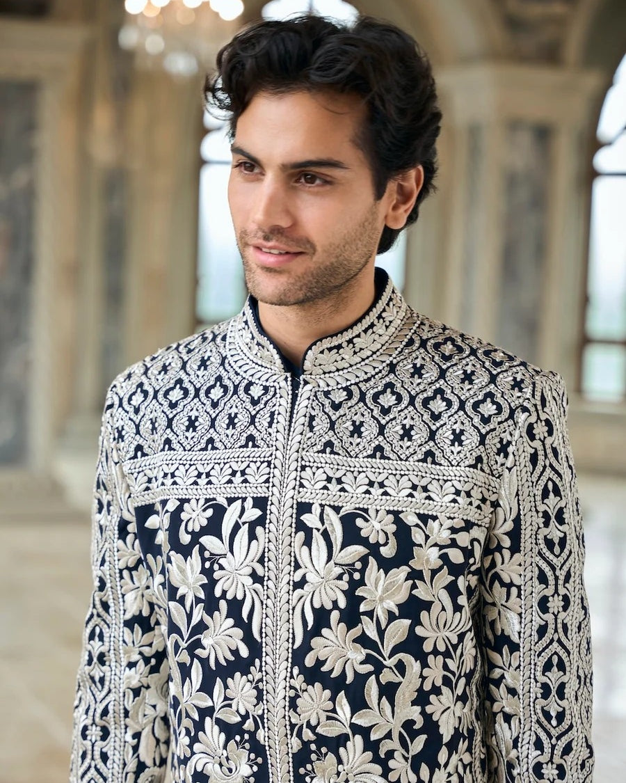 Chapelle Navy & Silver Sherwani Set