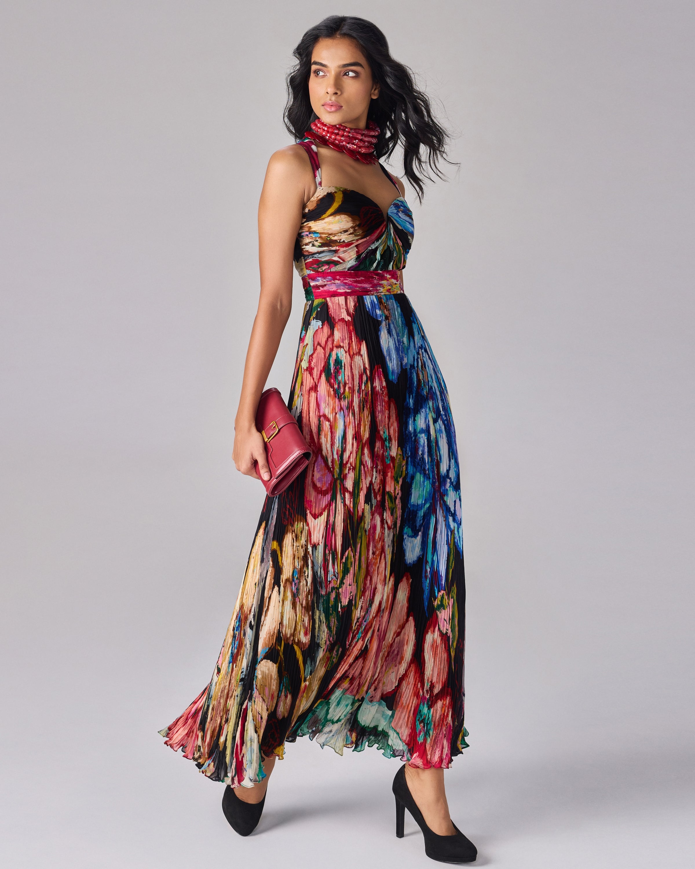 Expertly crafted, the Emma dress boasts a romantic floral print and delicate hand micro pleating. Its elegant maxi silhouette is accentuated by a flattering sweetheart neckline and waist band detailing. Feel effortlessly beautiful in this sophisticated dress.