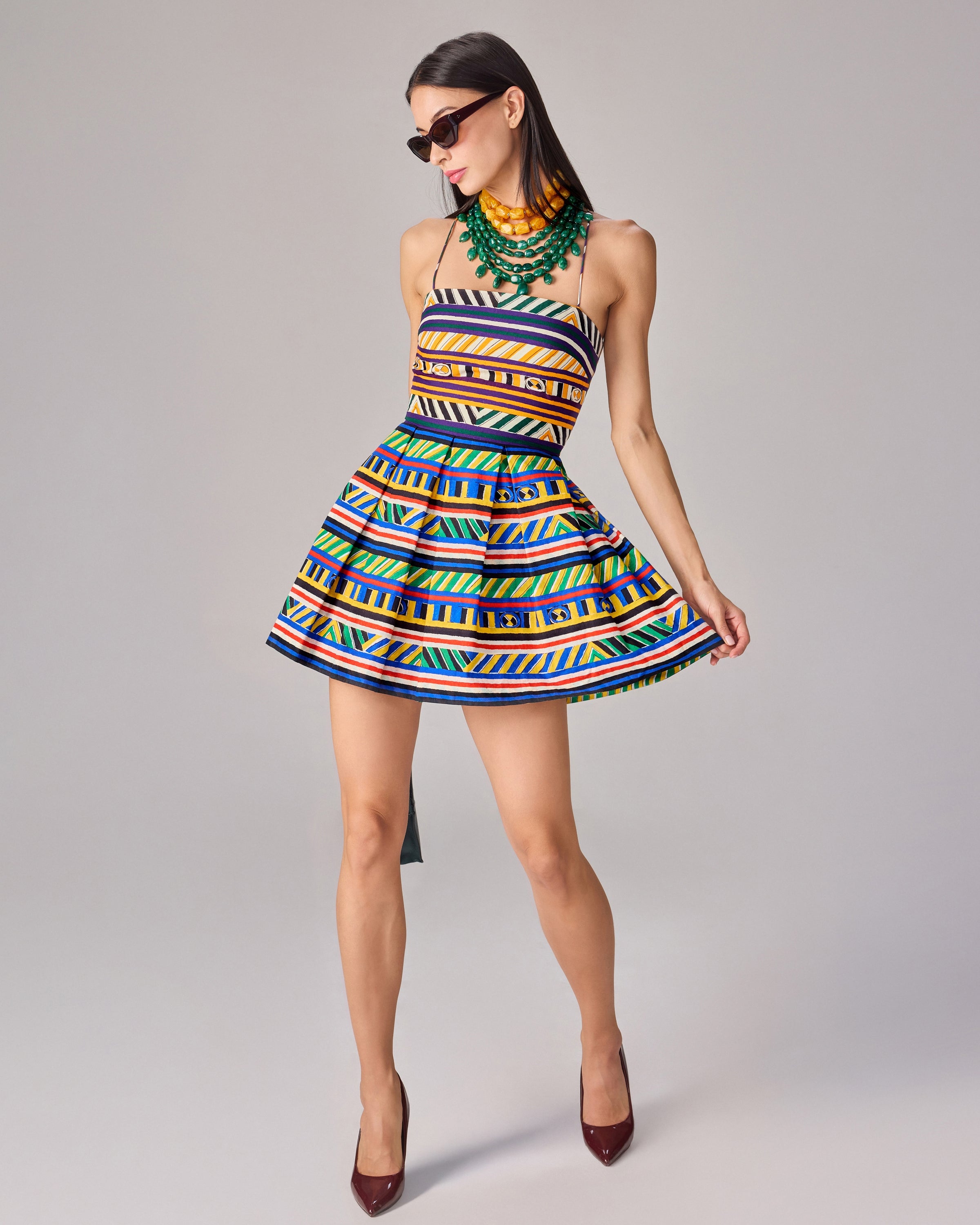 Add a touch of abstract charm to your wardrobe with our Fifi dress. Featuring a playful stripe print, this mini dress is perfect for any occasion. The noodle straps add a delicate touch, making it both stylish and comfortable to wear. Embrace fashion and comfort with our Fifi dress.