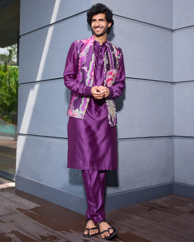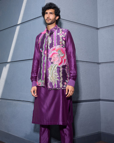 Elevate your style with the hamza bandi set. This luxurious kurta set is perfectly paired with a hand embroidered bandi, adding a touch of sophistication and exclusivity to your wardrobe. Step into the world of art and fashion with this elegant set.