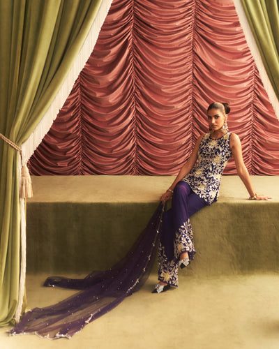 This haseena kurta & pants set features exquisite embellishments, making it a perfect choice for special occasions or formal events. The set includes a kurta, pants, and dupatta, providing a complete and elegant look. Dress to impress and stand out with this stunning ensemble.