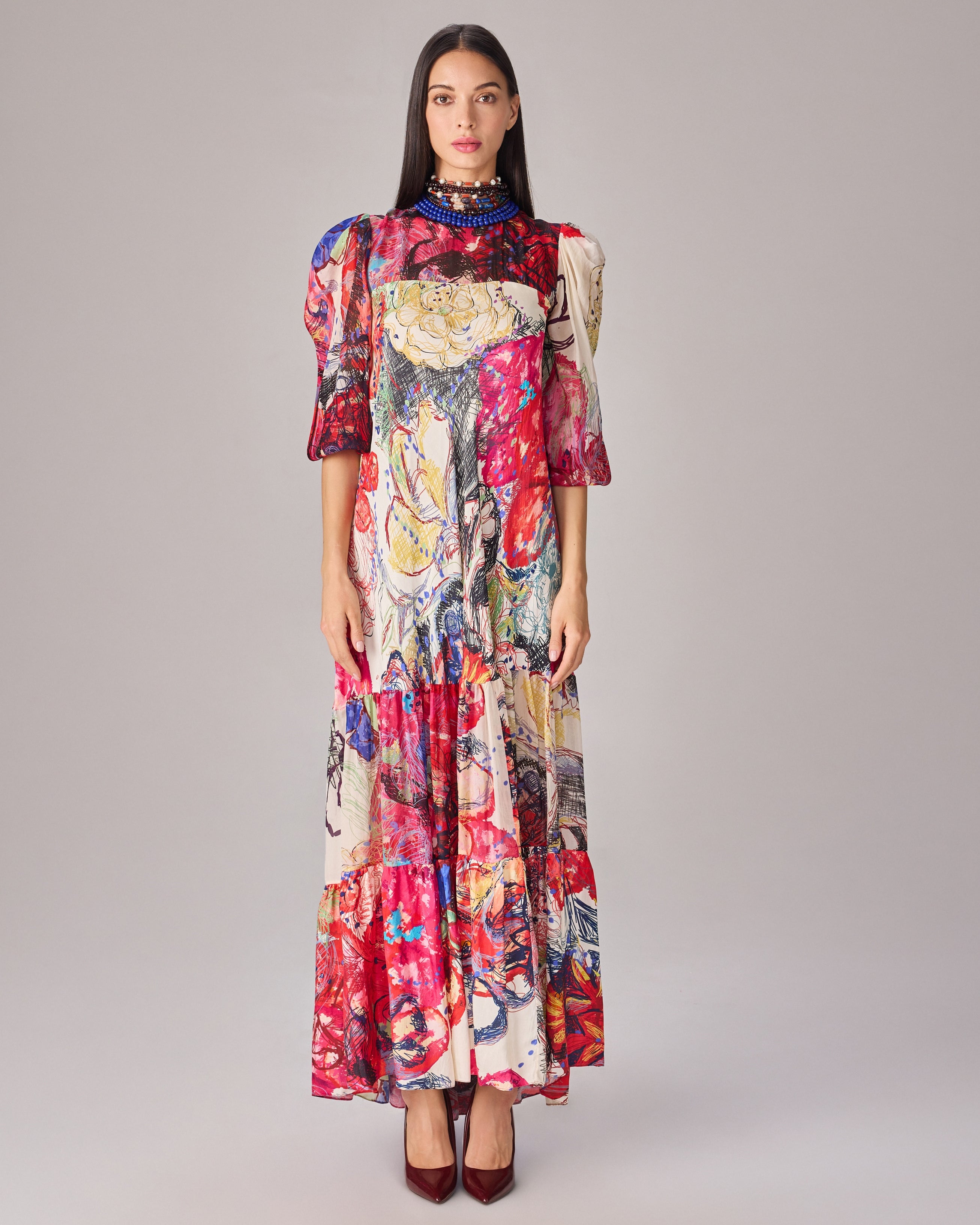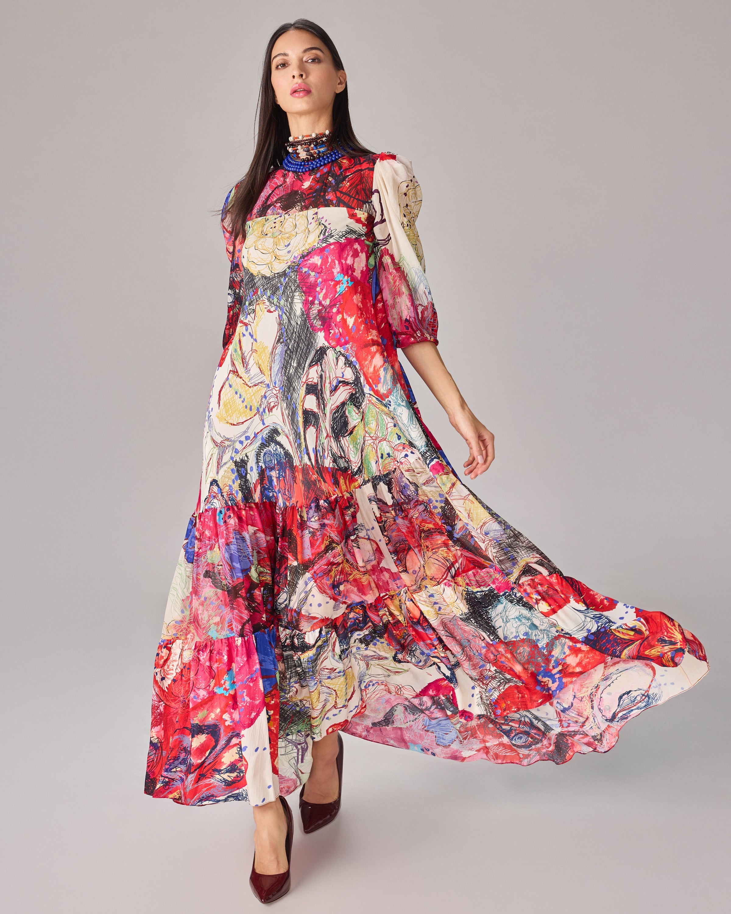 The Inara dress features a stunning abstract floral print and a high neck design, perfect for warmer weather. The tiered style adds an elegant touch to this summer dress, making it a versatile and stylish addition to any wardrobe. Stay on-trend and comfortable with the Inara dress.