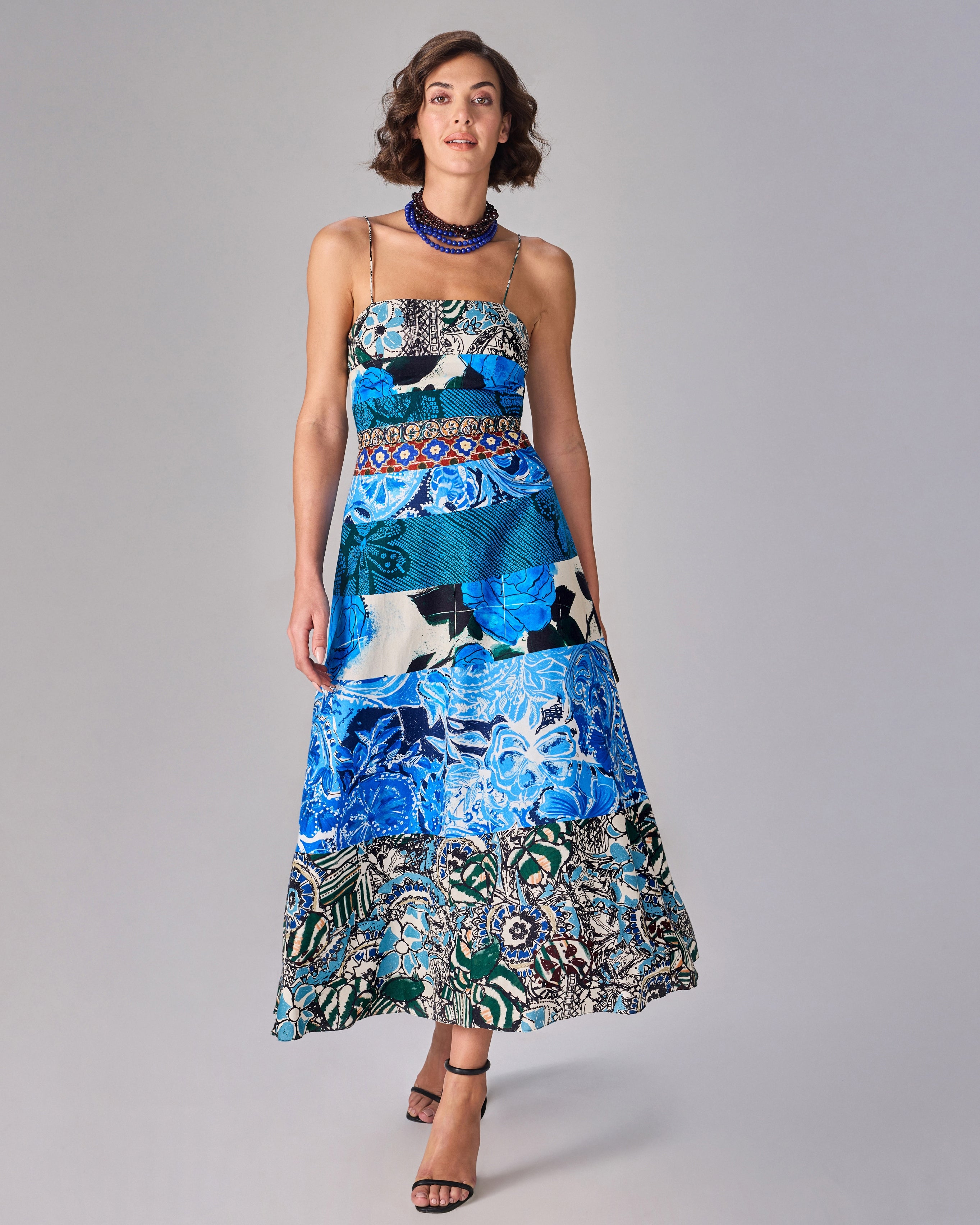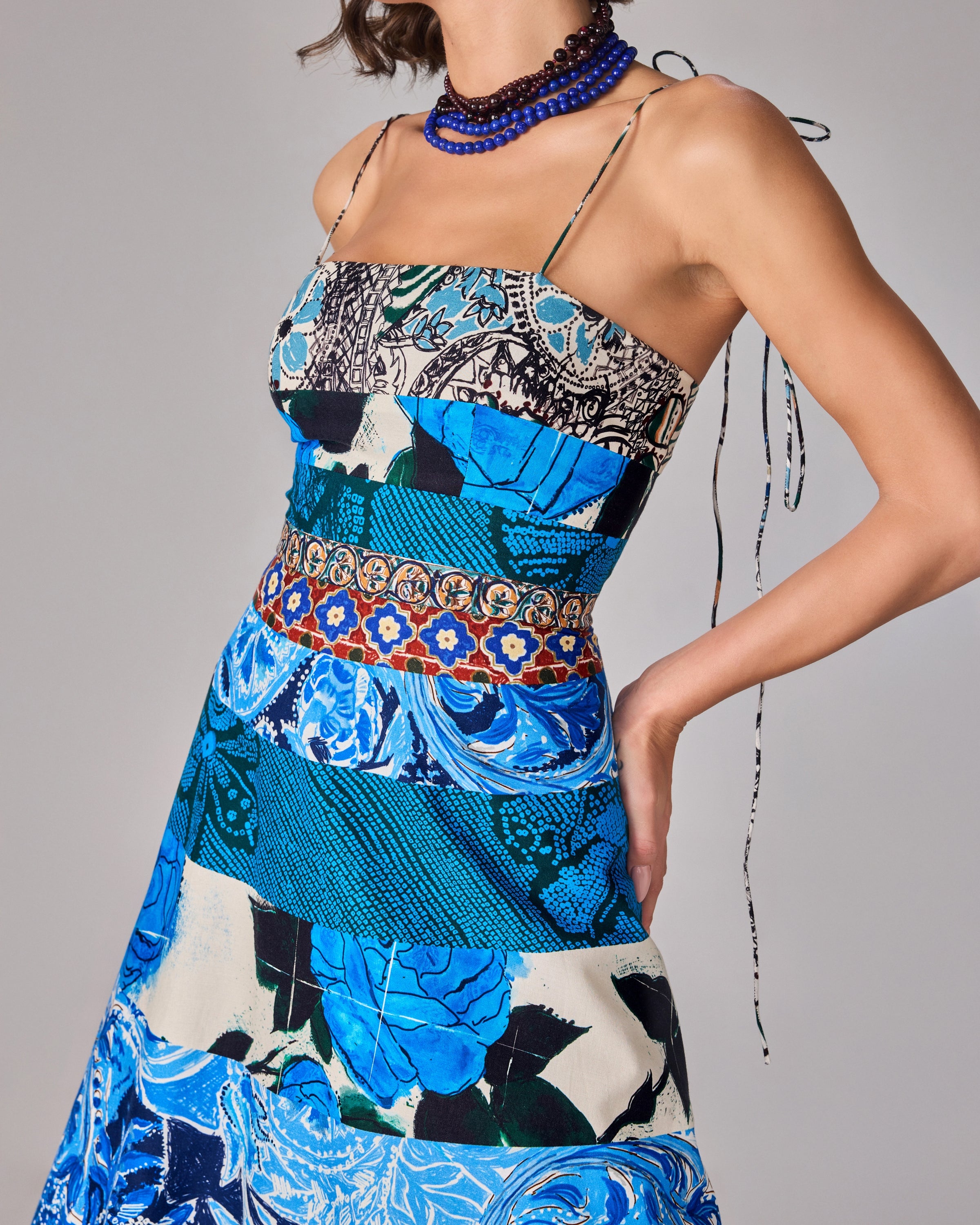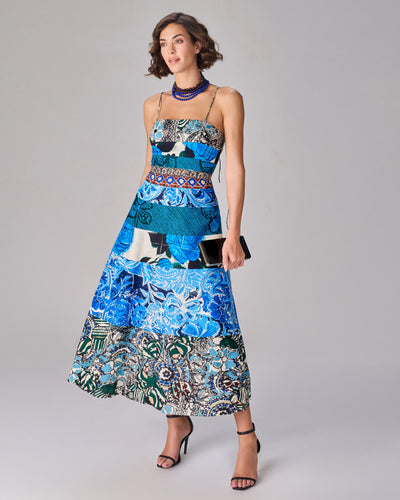 Upgrade your wardrobe with our Martha dress! This stunning midi dress features a beautiful block print design, adding a touch of elegance to any occasion. The flared silhouette and tie-up strap detailing provide a flattering fit, making you feel confident and stylish. Elevate your look with our Martha Dress today.