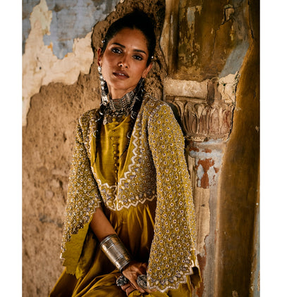 Indulge in luxury with our mustard Phalghuni zardozi anarkali set. The intricately embroidered anarkali adds a touch of opulence to any occasion. Elevate your style with this exclusive piece, inspired by the world of art and fashion. Step into elegance and sophistication with this must-have set.