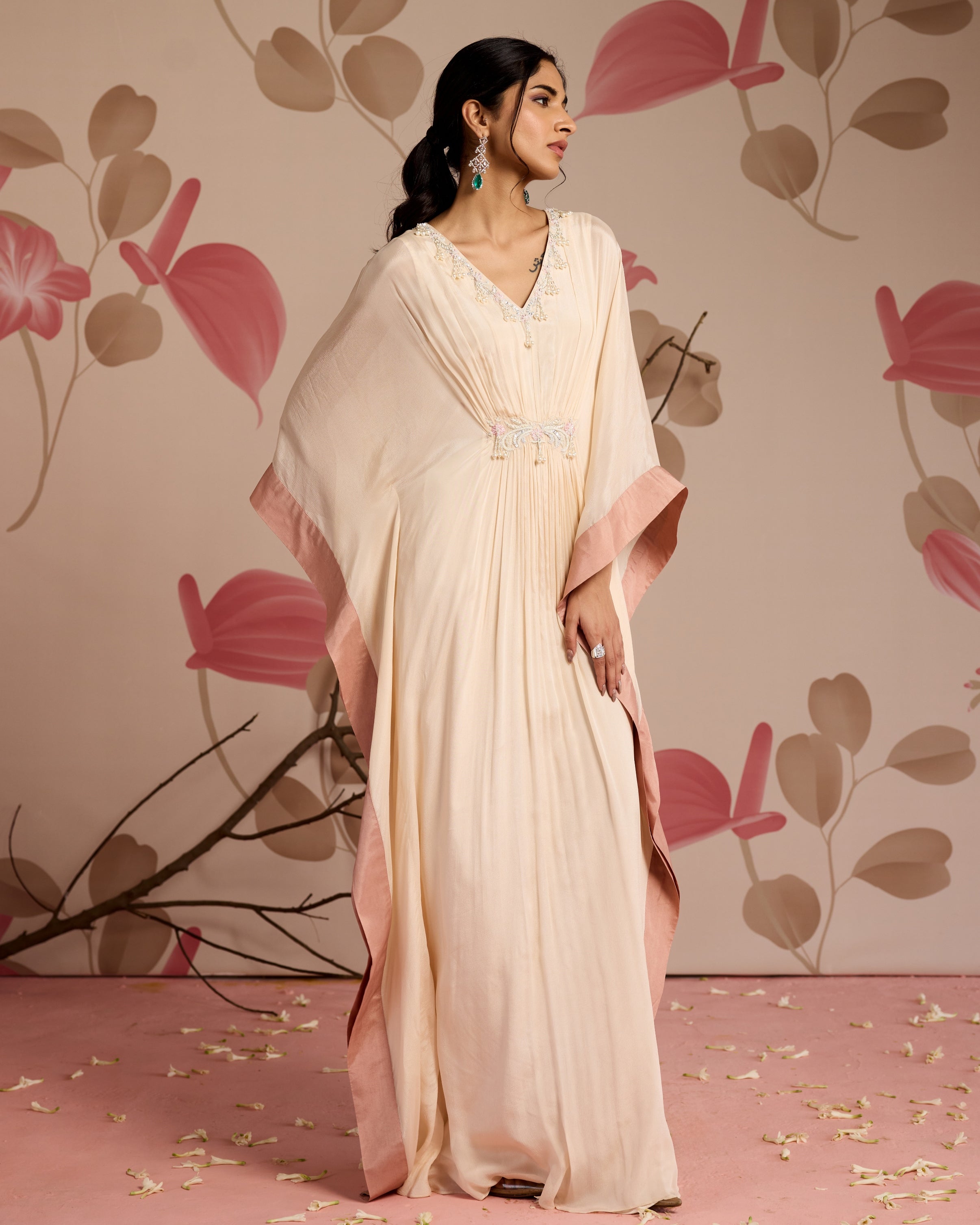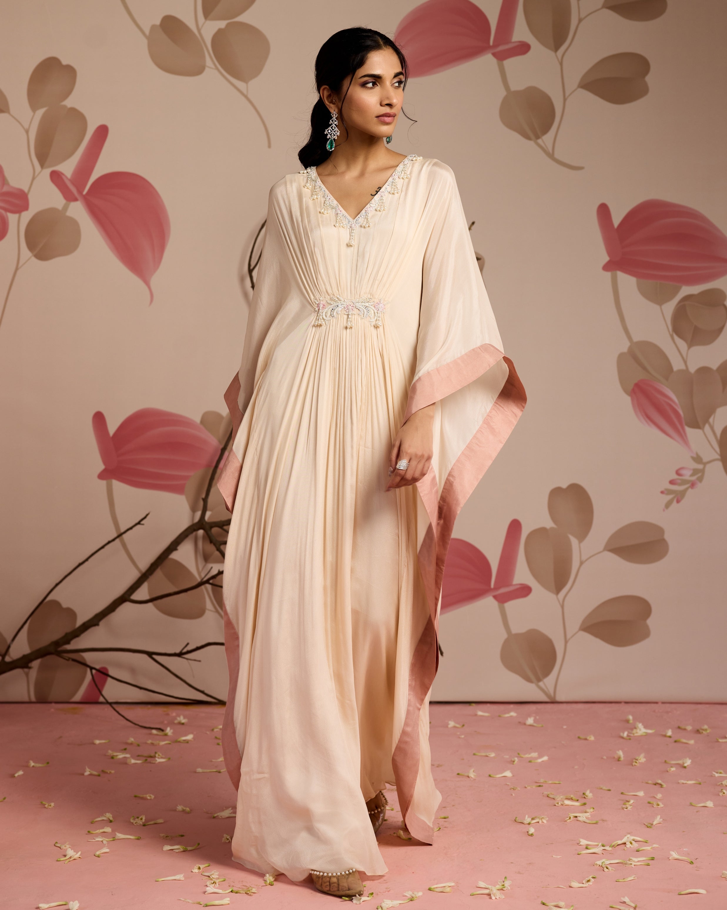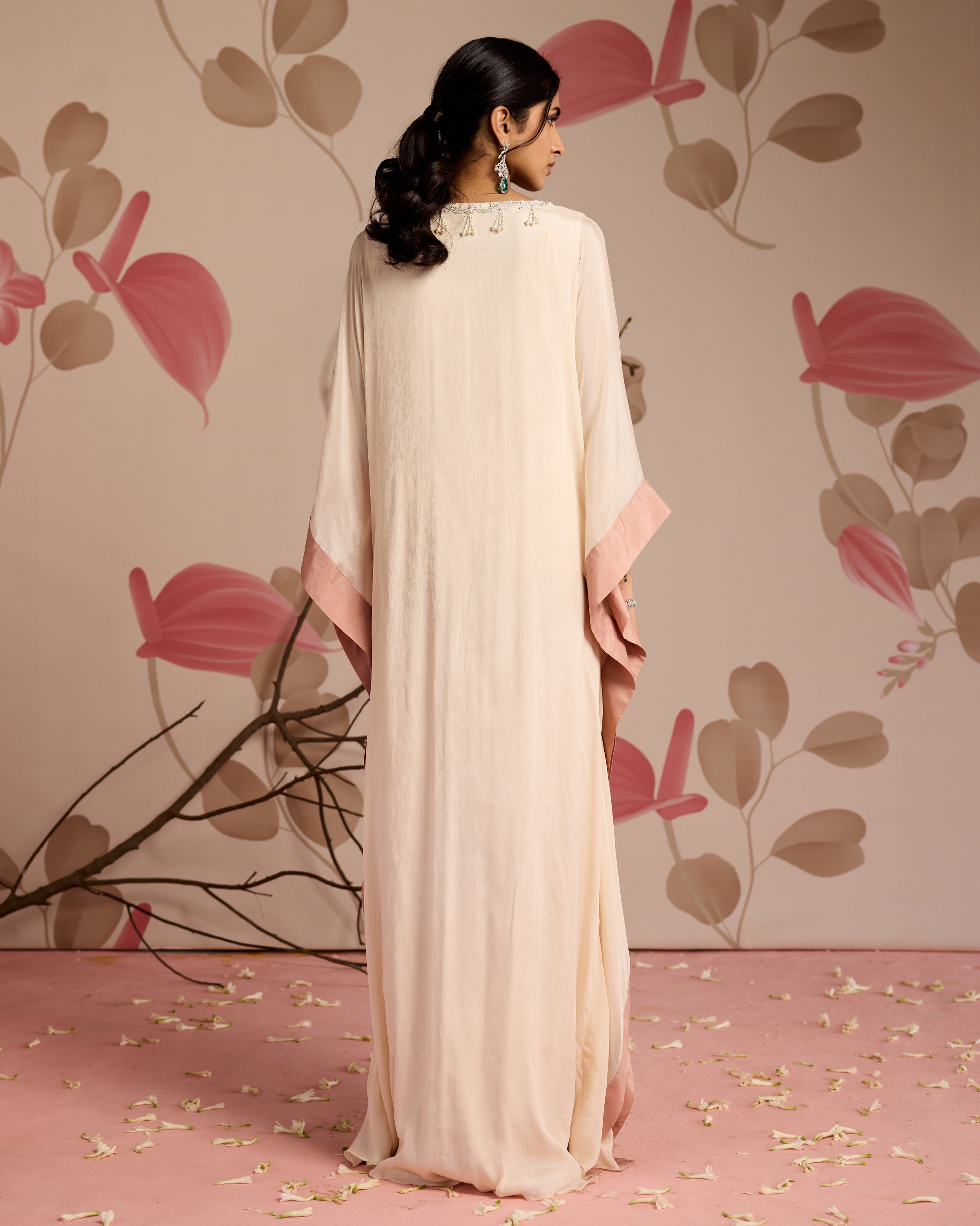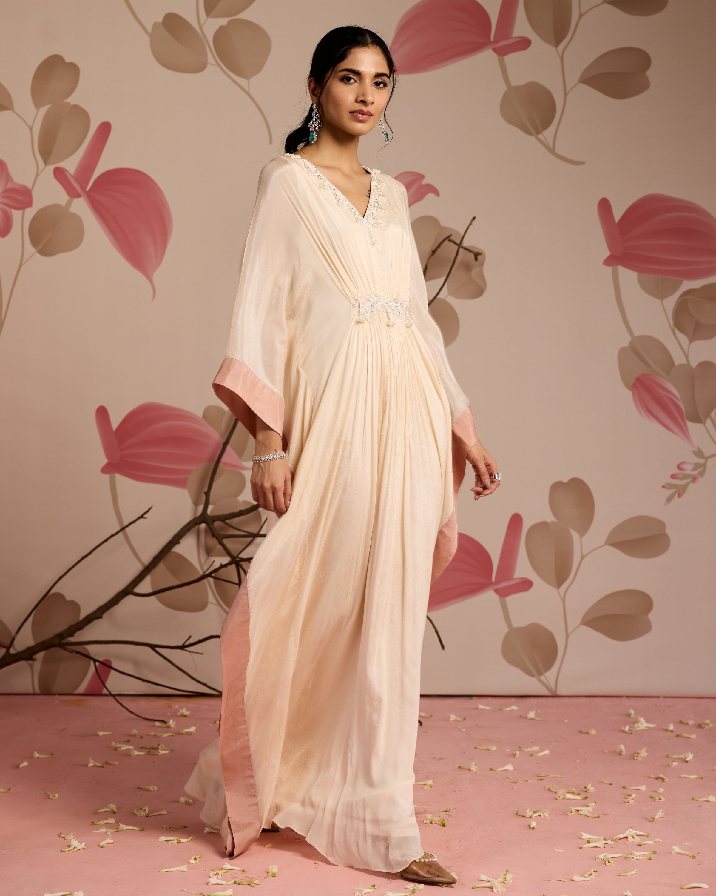 Experience luxury and glamour with our Orchid kaftan, featuring intricate embellishments and a gracefully draped full length design. This kaftan is perfect for special occasions or adding a touch of elegance to your daily wardrobe.