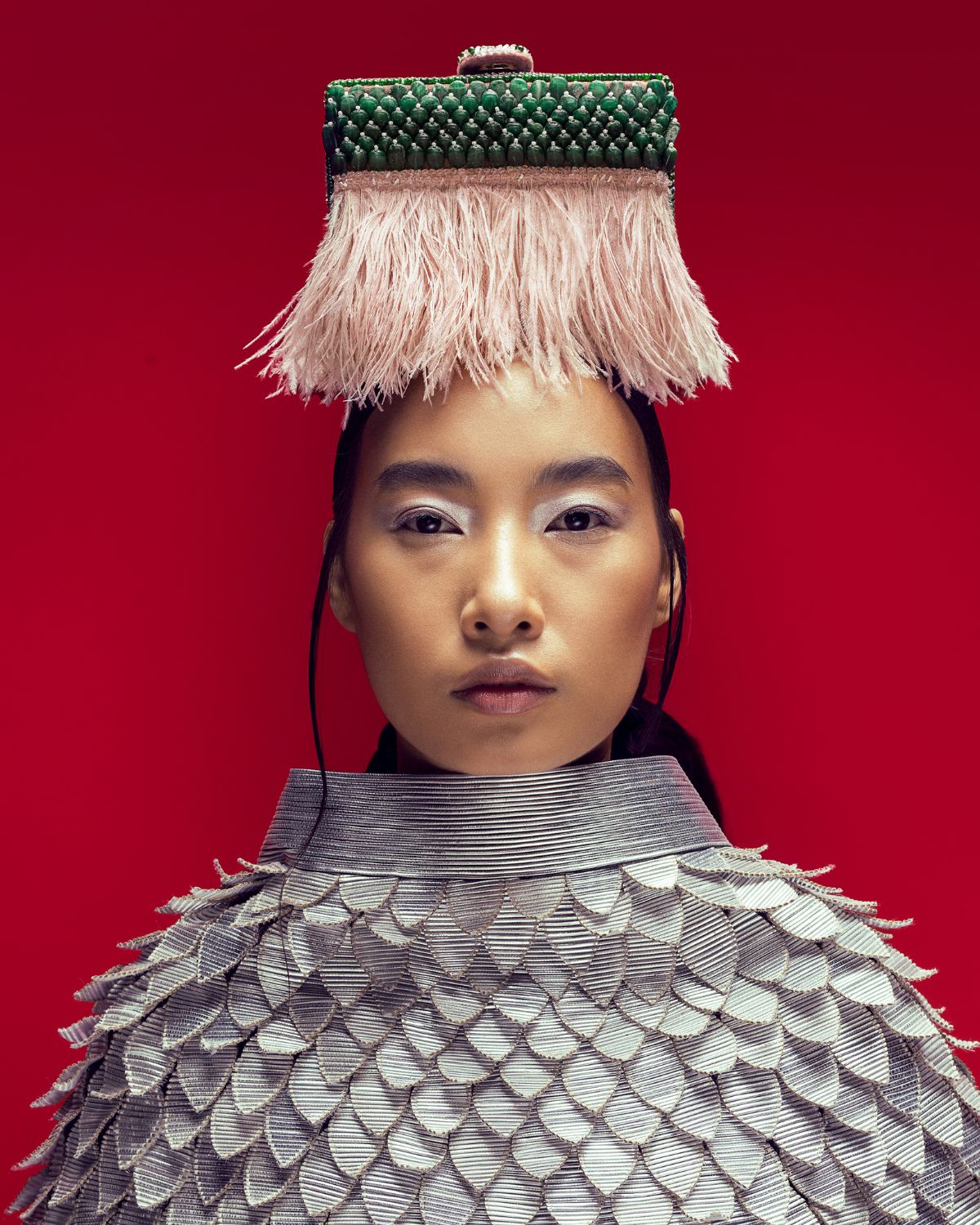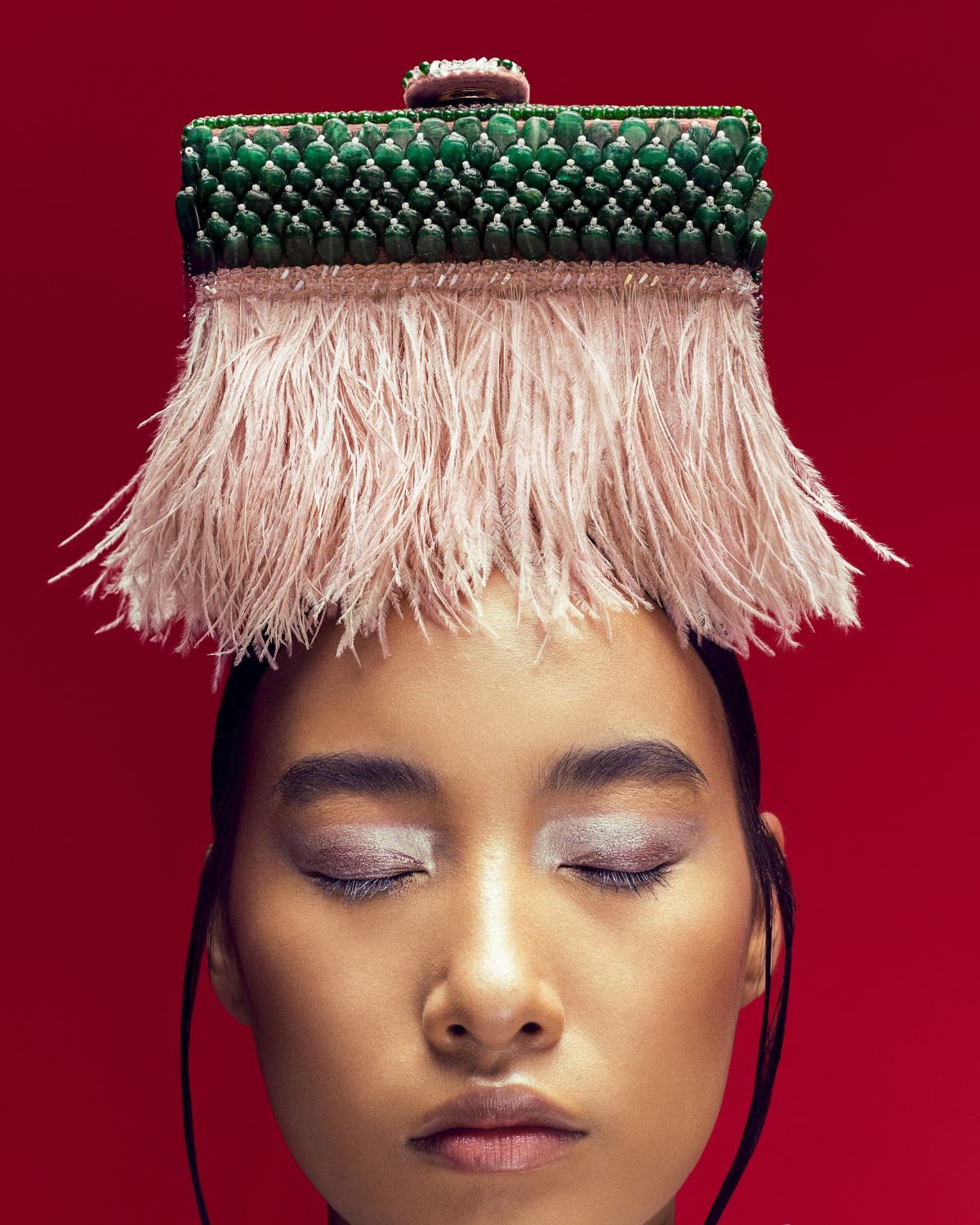 The Pink zehra box bag is for the modern, unapologetic woman. It is edgy yet elegant. The feathers add an element of lightness and our signature hand stacked emerald beads help the bag stay true to the brand identity. This one is sure to make heads turn.