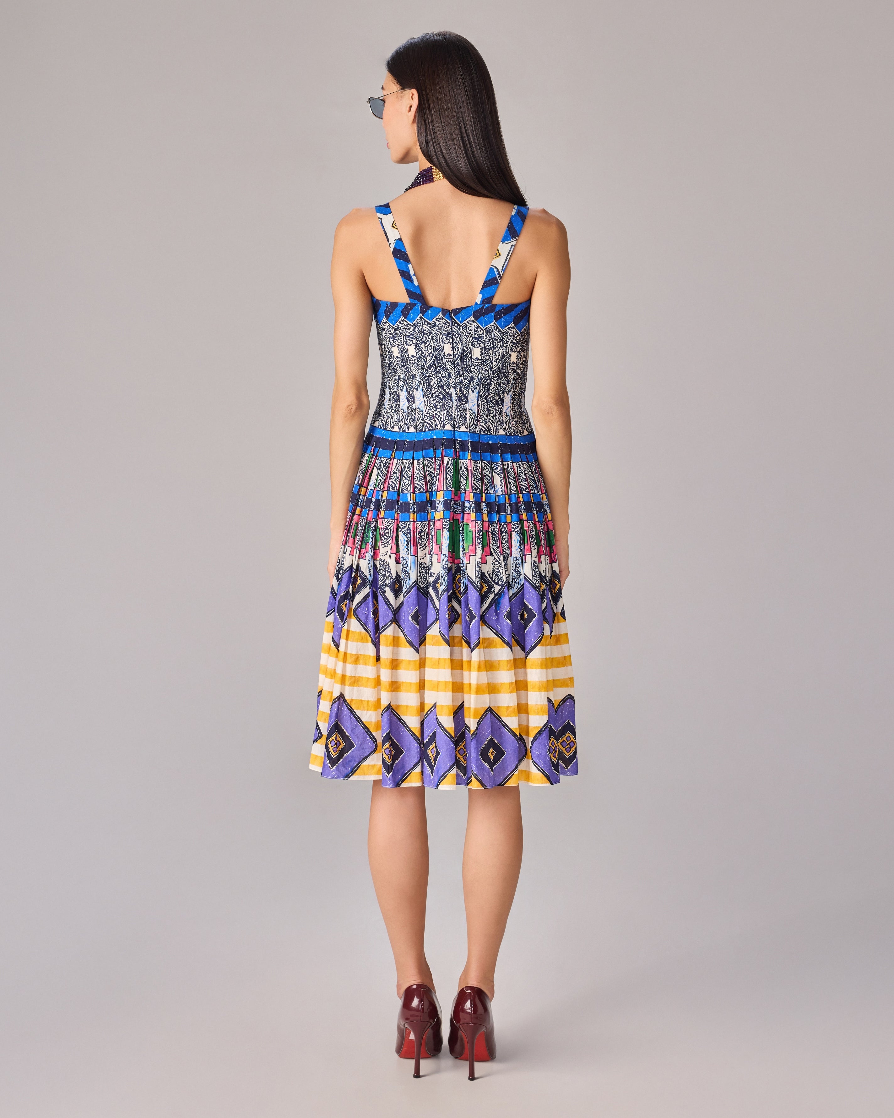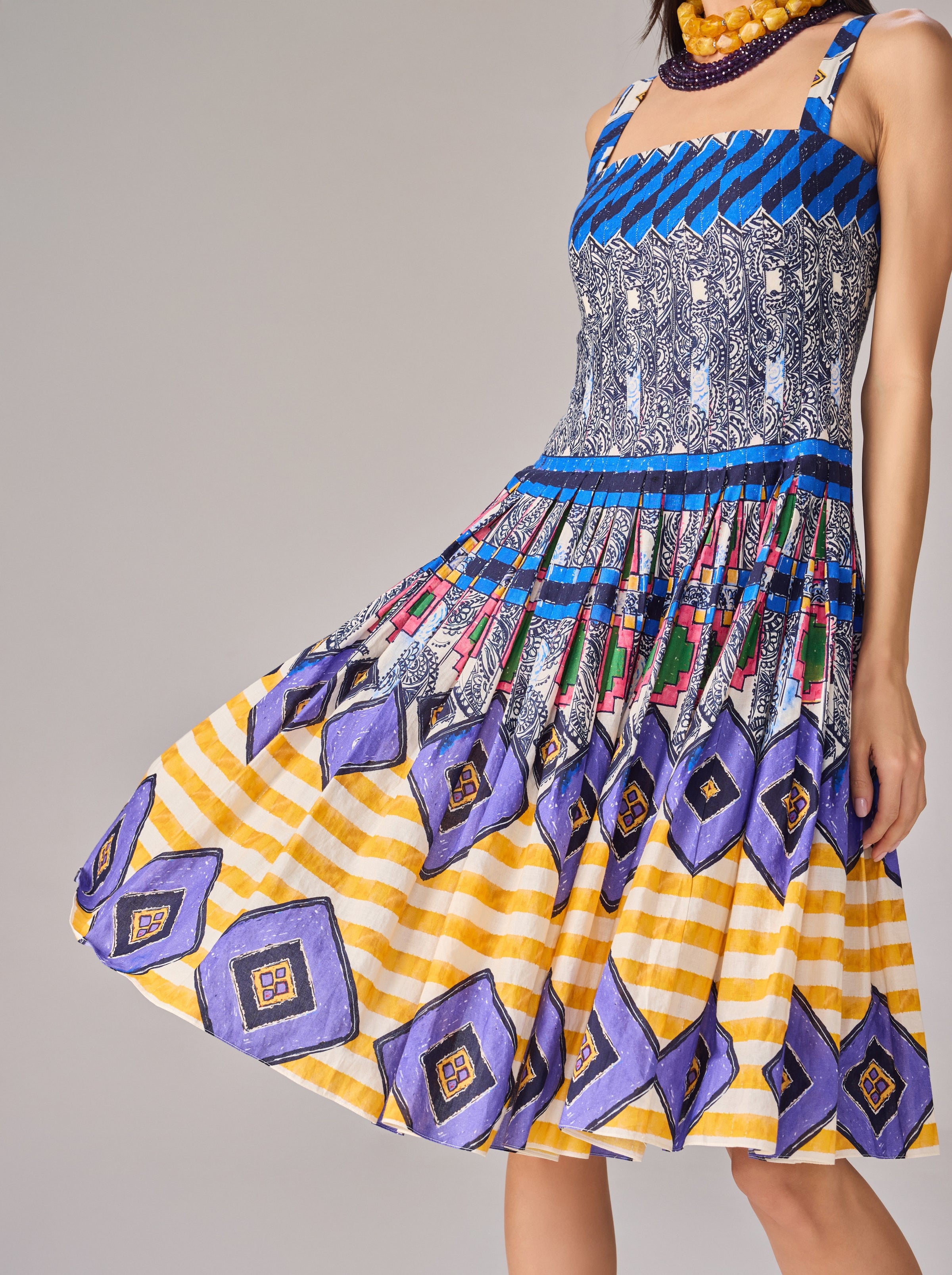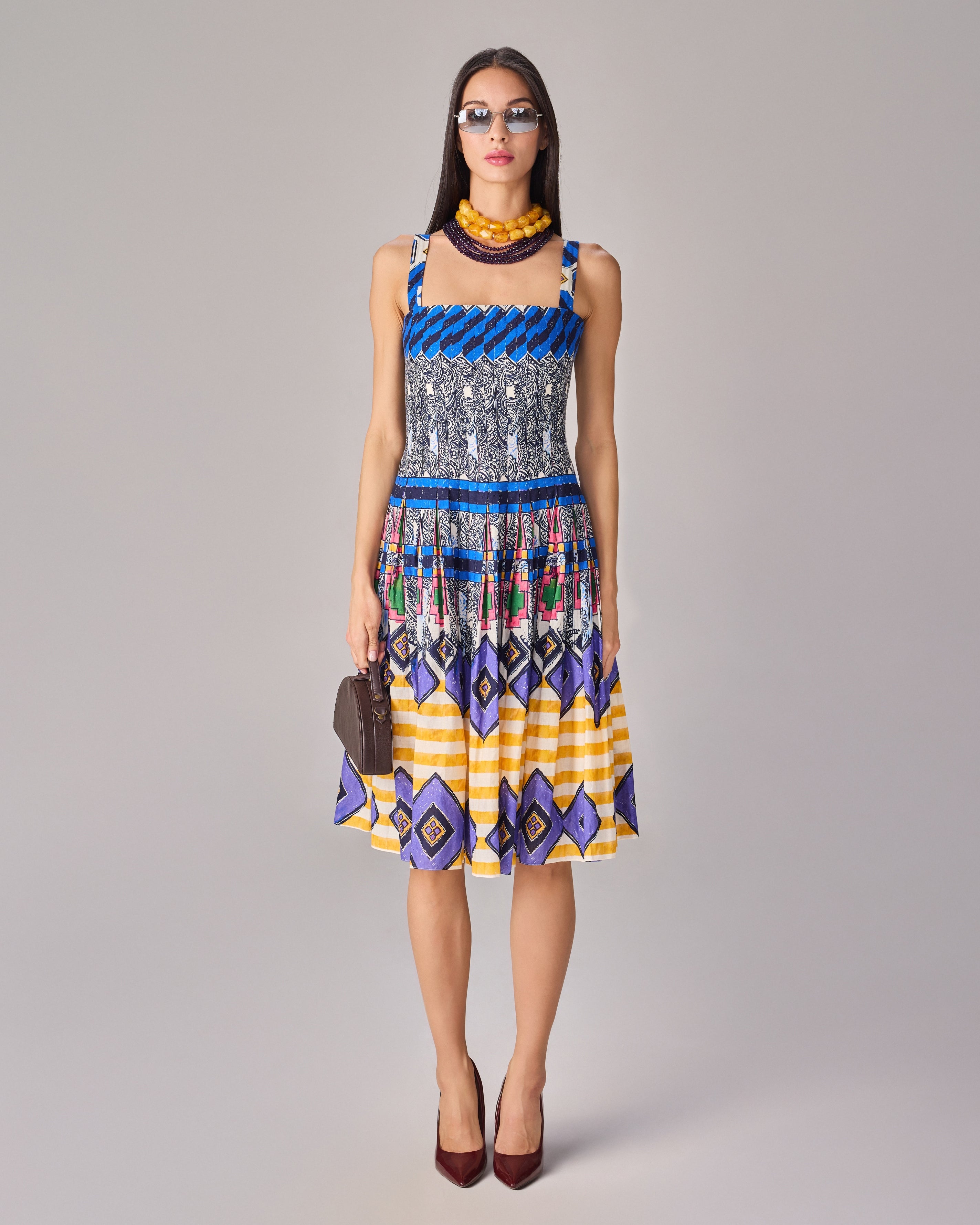 Introducing the Tamsin dress, a sophisticated fashion statement. This elegant midi dress features a unique abstract print that sets it apart from the rest. With a square neck design, it offers a stylish yet professional look. Elevate your wardrobe with this modern and versatile dress.