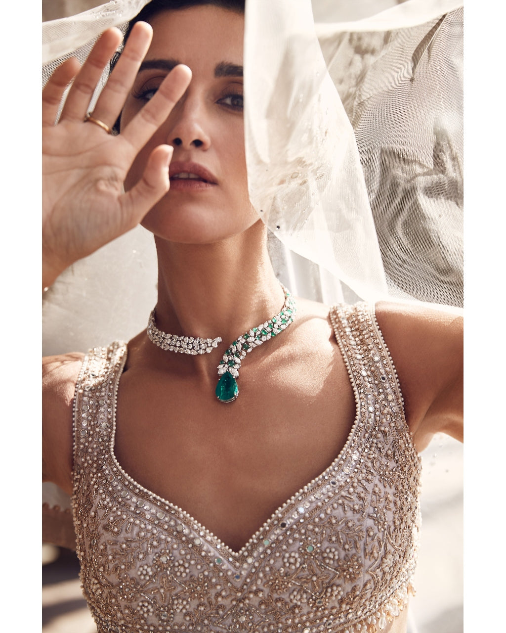 Experience the ultimate statement of elegance and craftsmanship with the Tuscan ivory landscape of dreams lehenga set from matsya. Made with raw silk and featuring intricate anmol dori embroidery, this set showcases the breathtaking beauty of masai mara. Adorned with pearls, mirrors, and sequins, and finished with the iconic matsya v-wing belt, this piece is a true work of art.